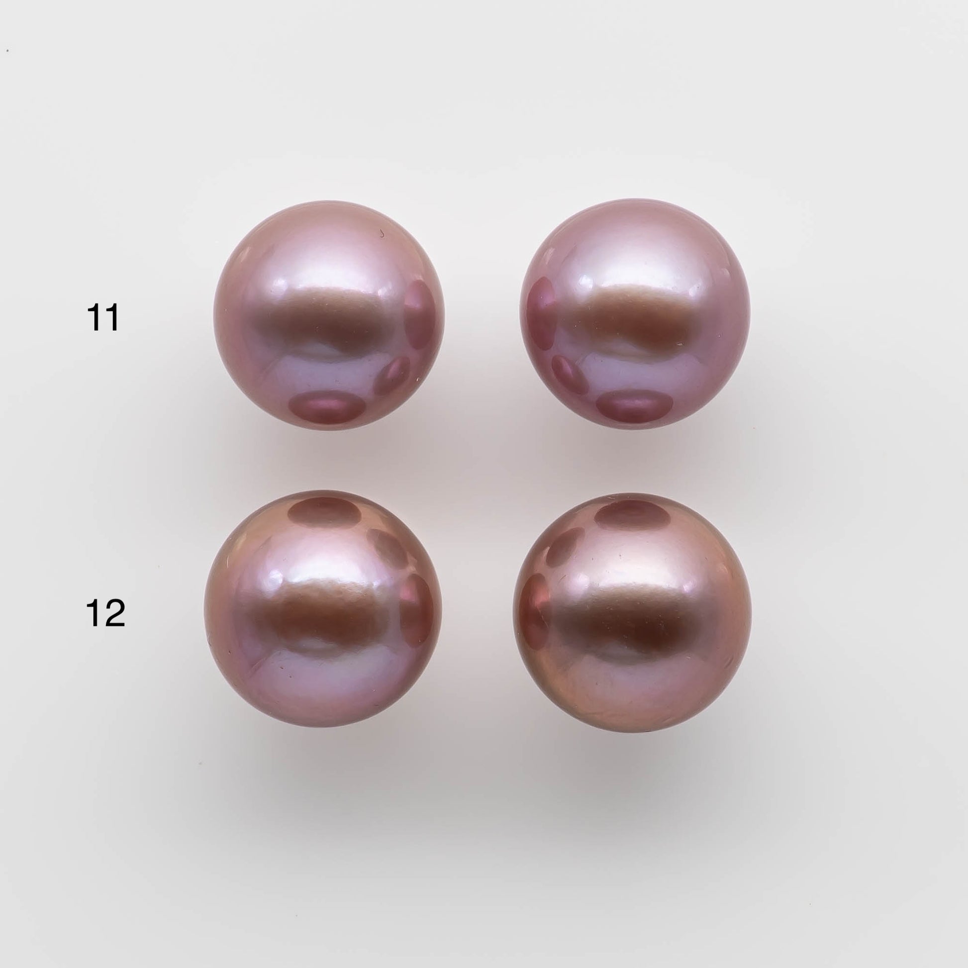 12-13mm Edison Pearl Round Matching Pair in All Natural Colors and High Luster, Half Drilled for Making Earring, SKU # 1779EP