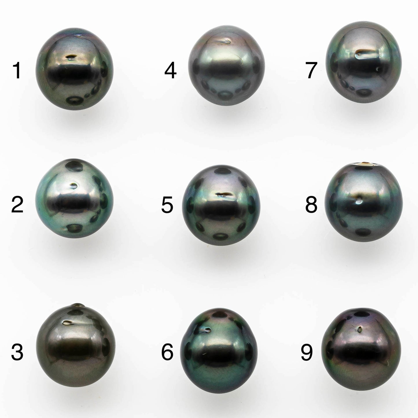 Gorgeous undrilled loose Tahitian Pearls near round in their natural colors and perfect for creating a unique piece of jewelry design. Tahitian pearls also referred as black pearls, but they come in different tone of natural colors such as peacock, green, blue, black, grey, or brown.