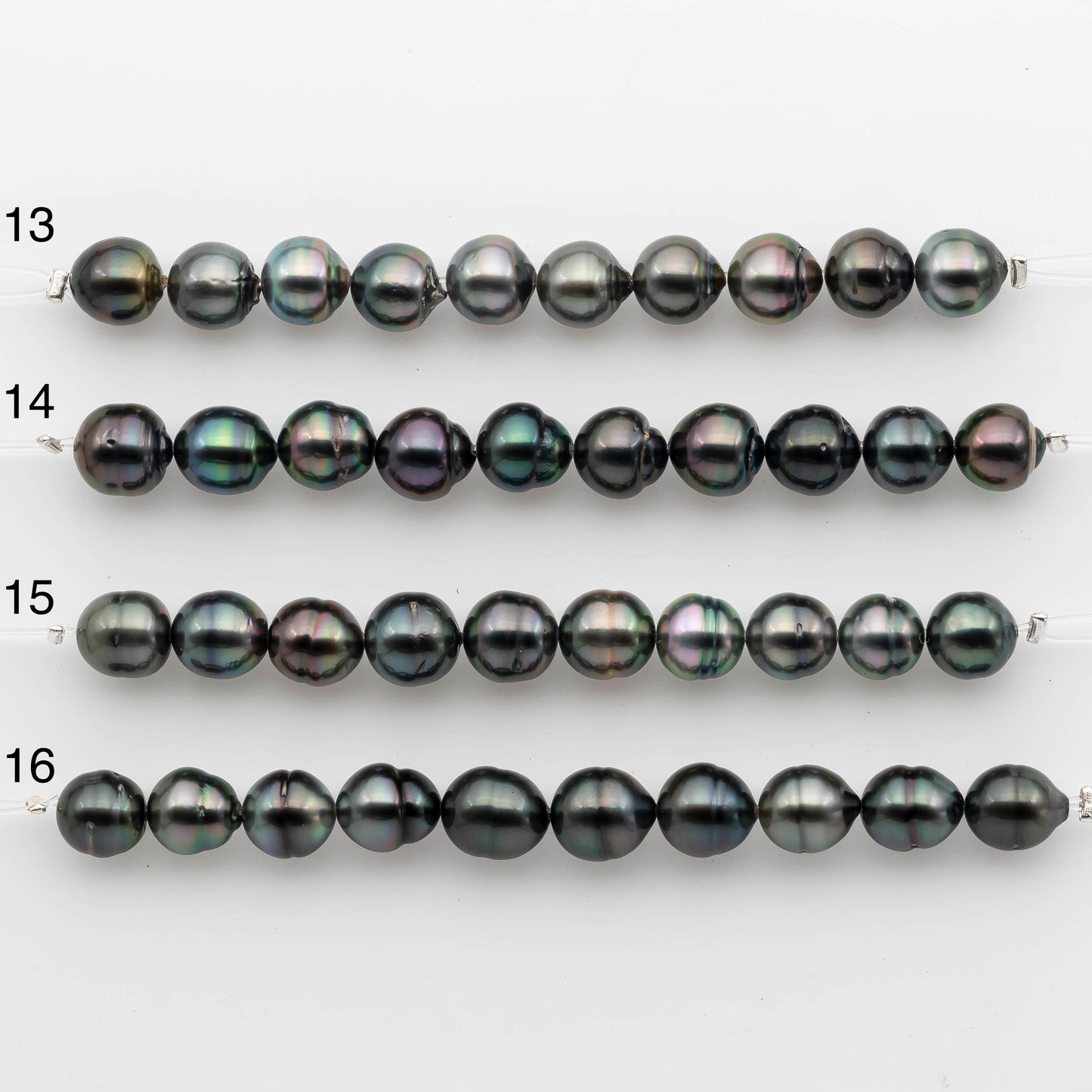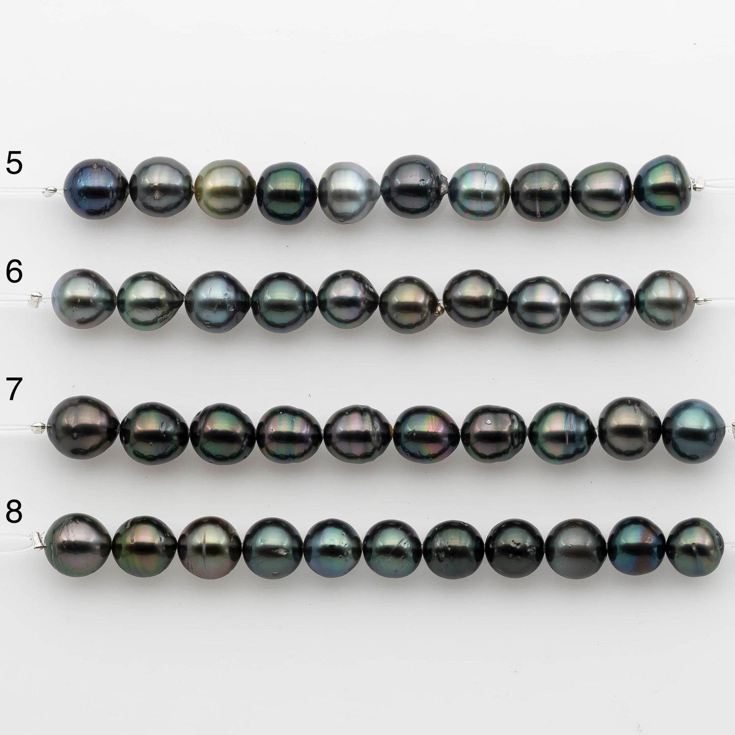 Tahitian Pearl in short strand for beading or jewelry making. These are beautiful pearls with lusters and blemishes. Tahitian pearls are referred as black pearls, but they come in different tones of natural colors. The colors are peacock, green, blue, black, grey, or light grey.