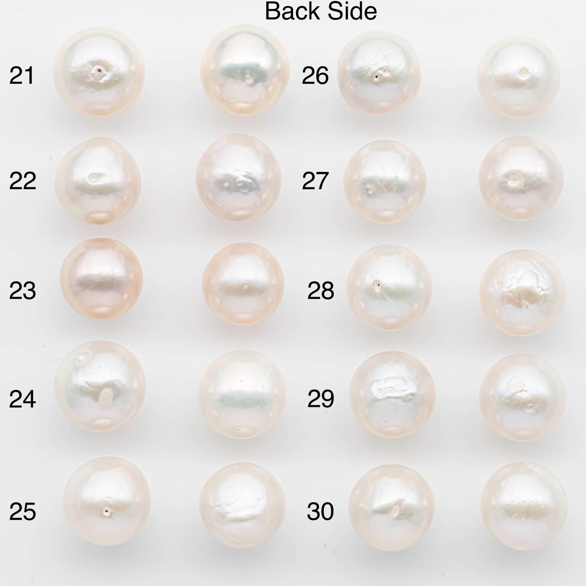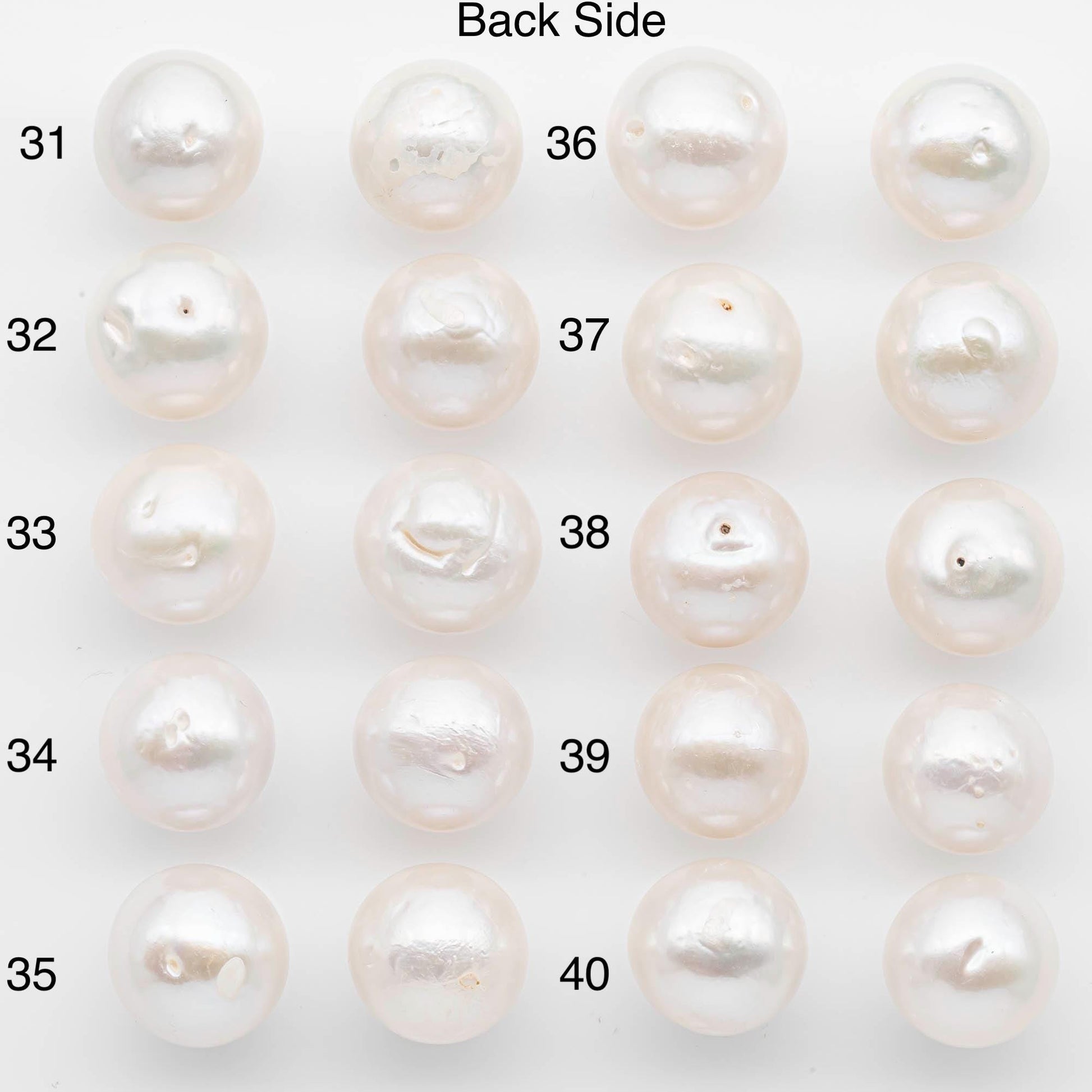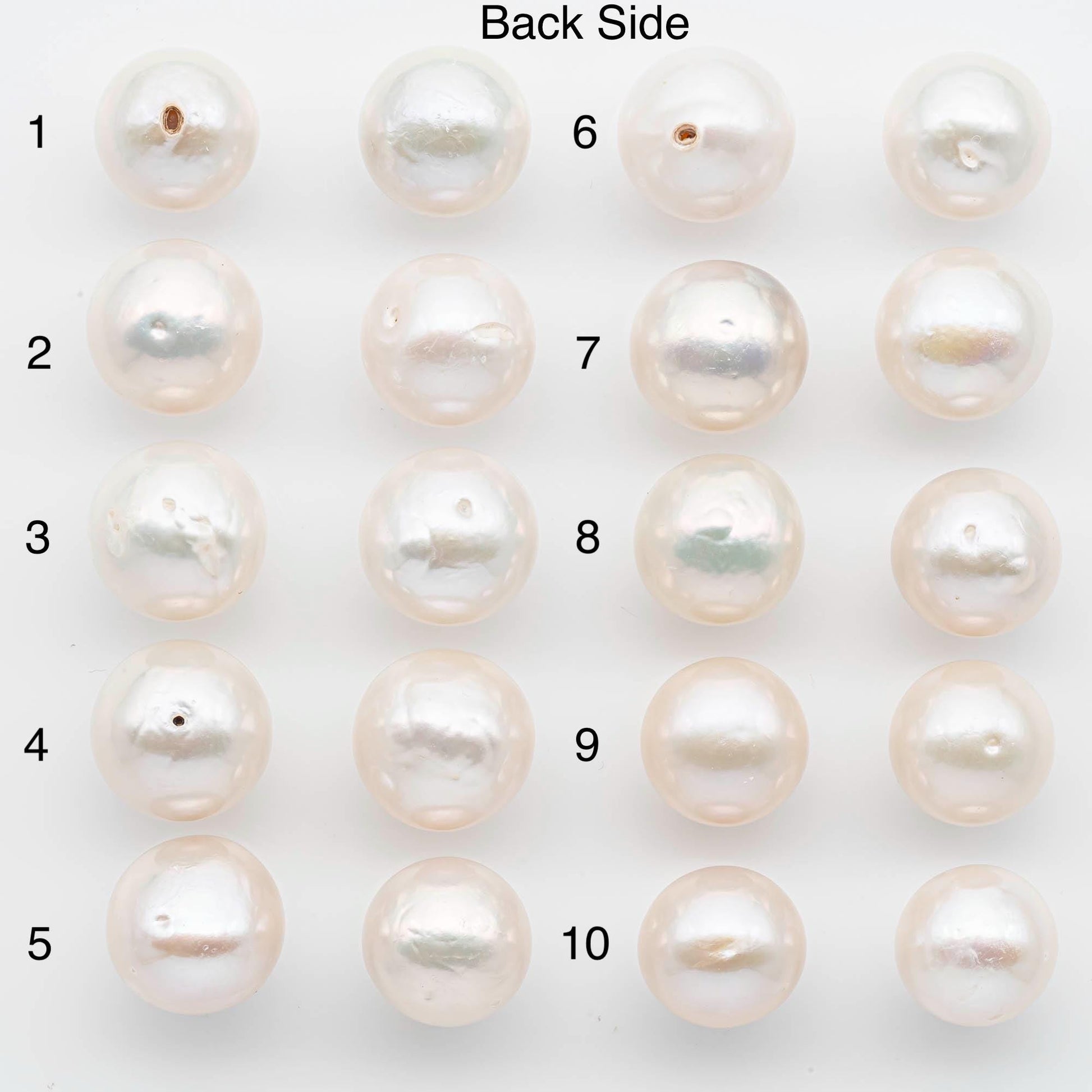 • These pearls are best suited for stud earrings, since the back blemishes will be covered when worn.