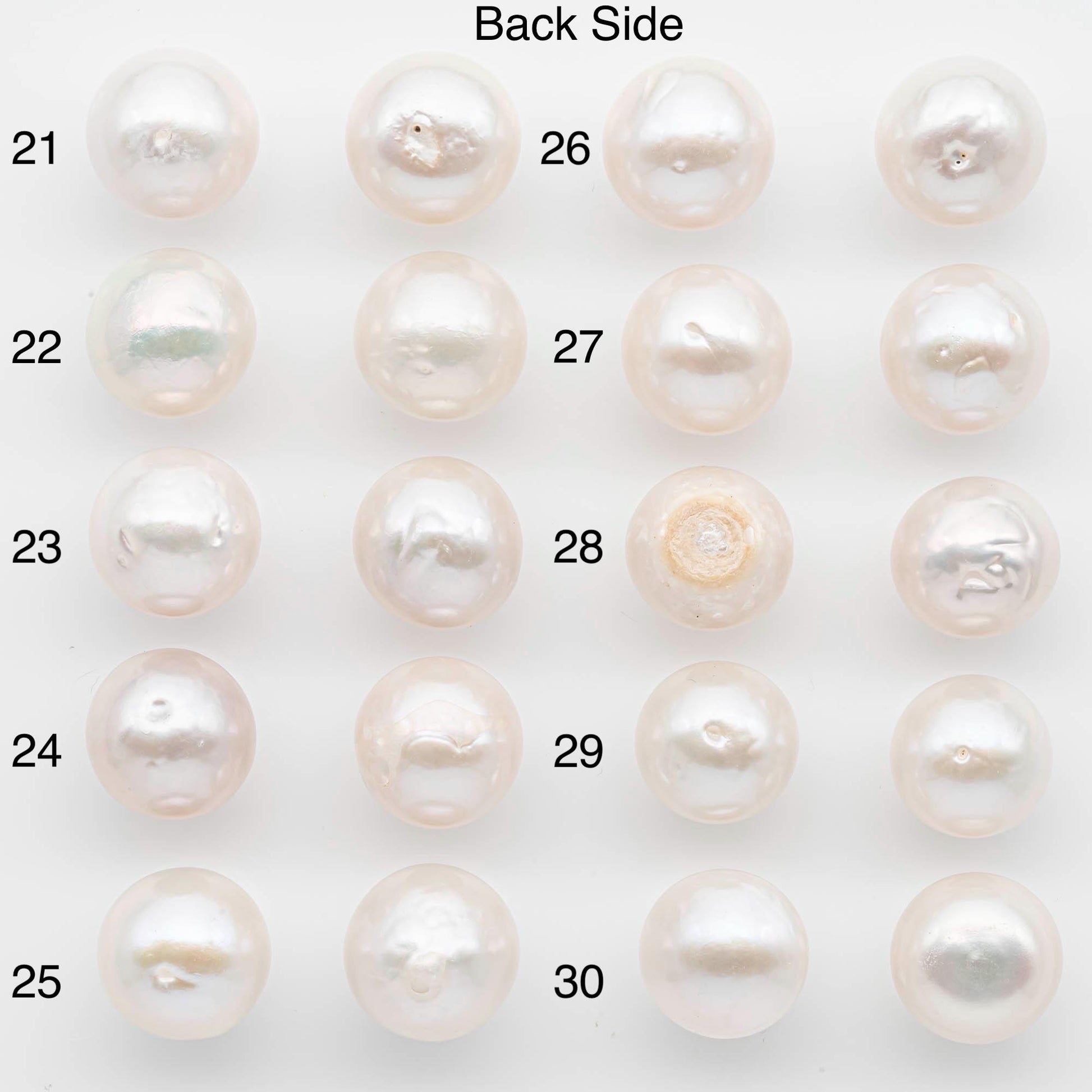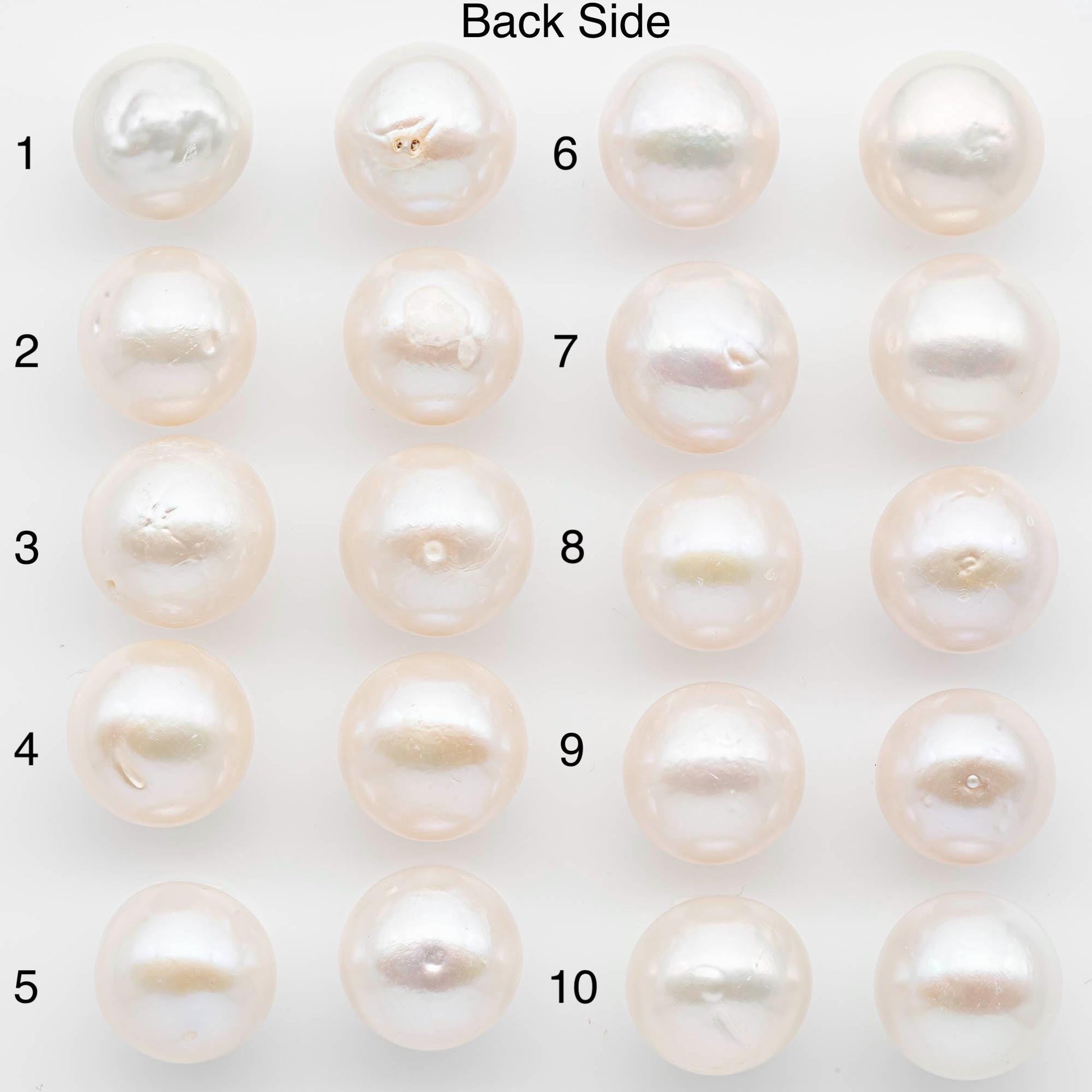 • These pearls are best suited for stud earrings, since the back blemishes will be covered when worn.