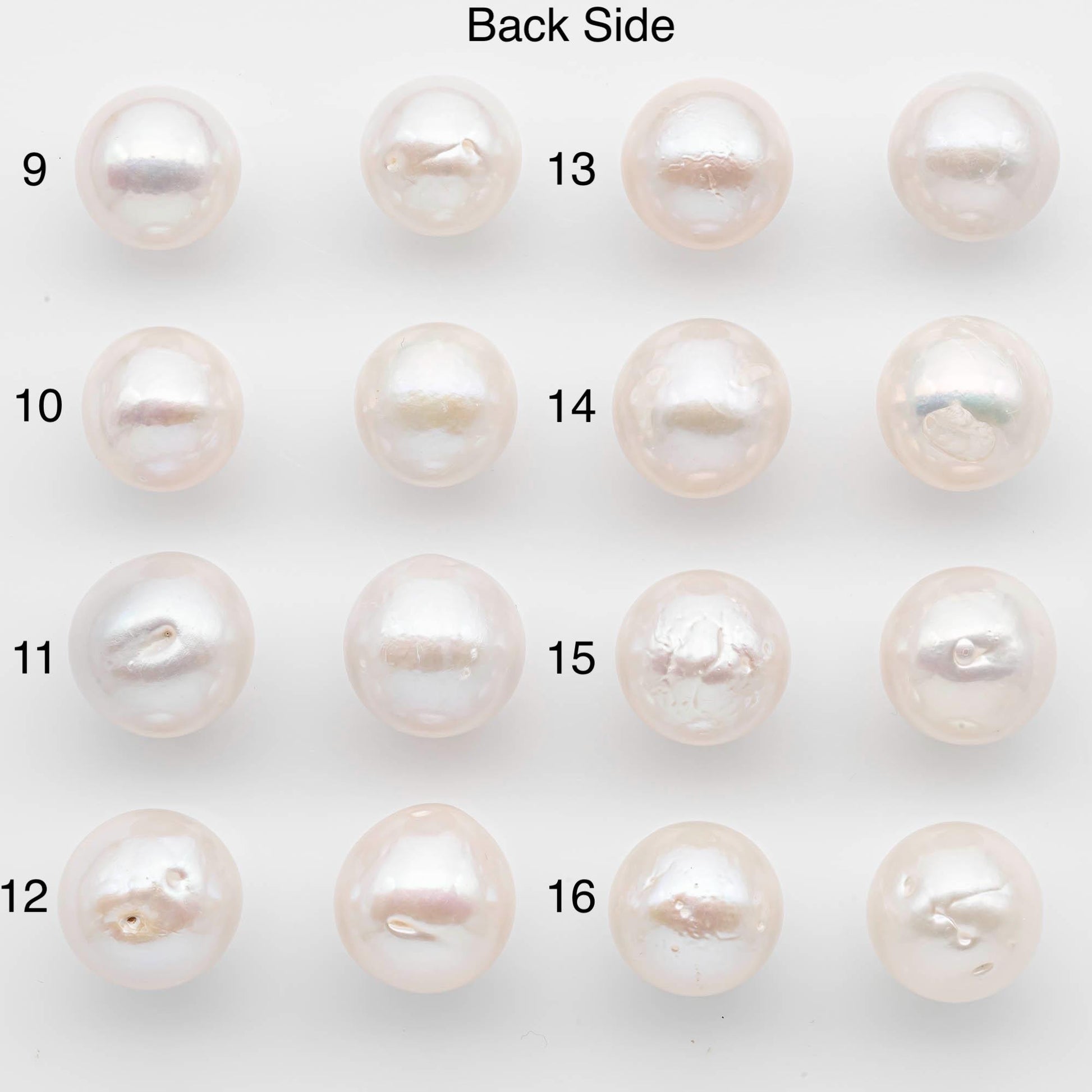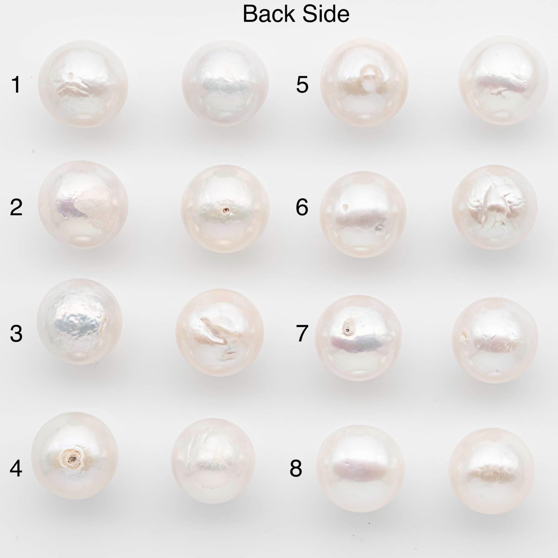 • These pearls are best suited for stud earrings, since the back blemishes will be covered when worn.