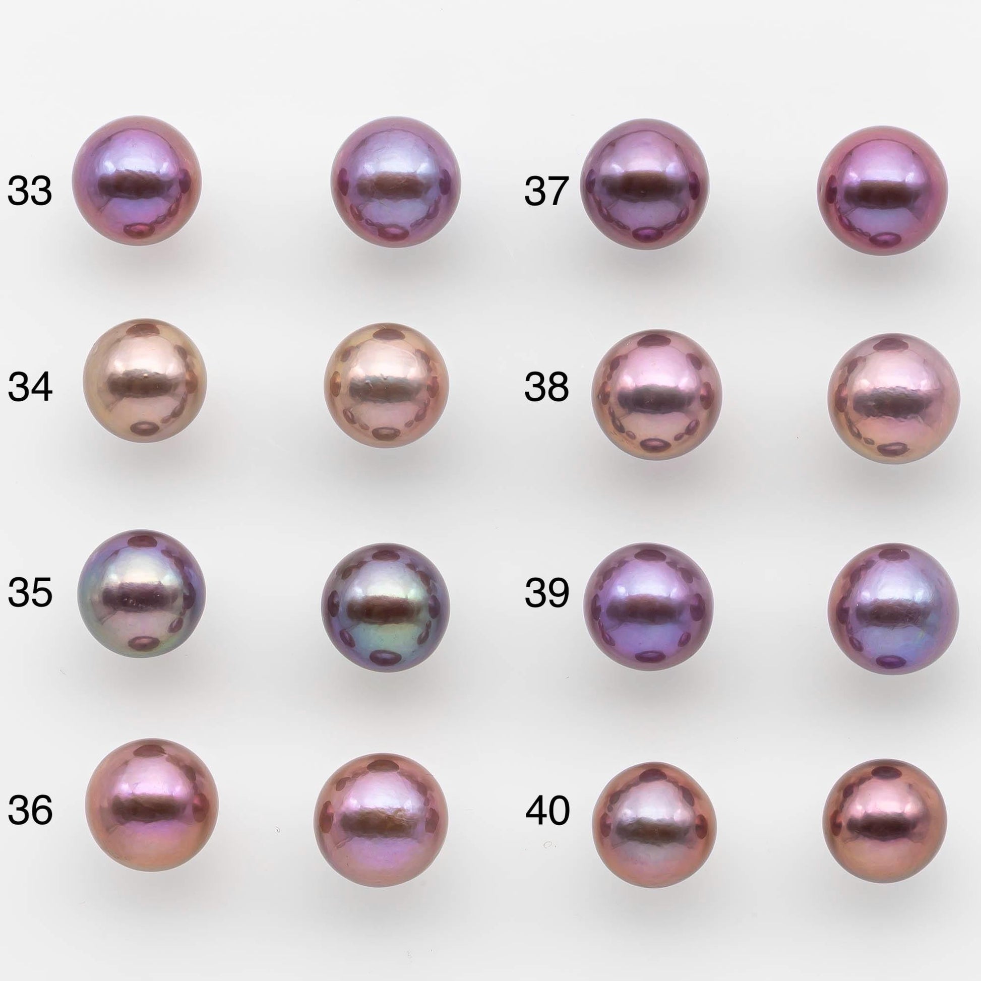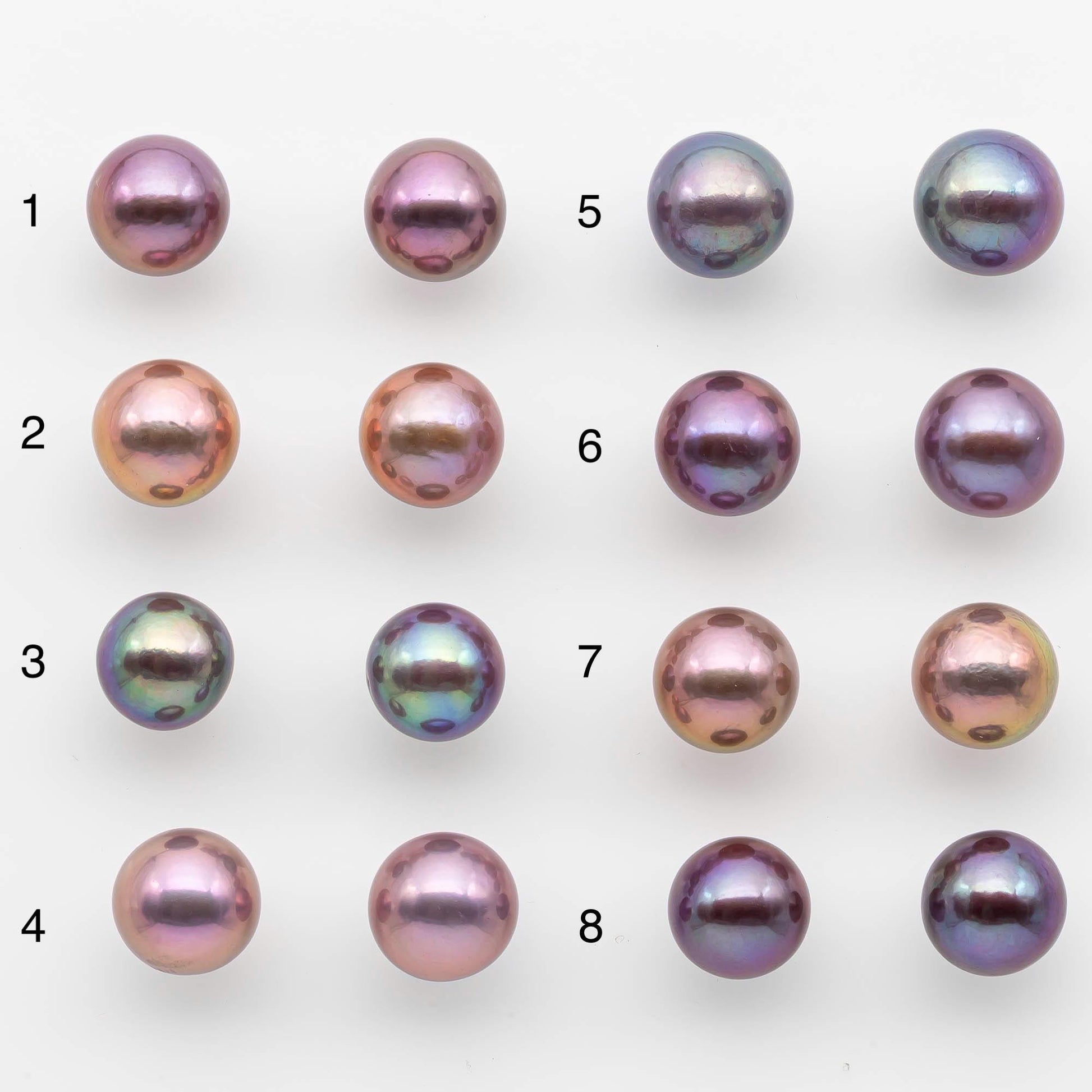 Two pieces of loose round Edison Pearl with 0.9mm half drilled for making earring stud. These have beautiful lusters and all the colors a natural, not color enhanced. Some of the deep purple colors are hard to find.
