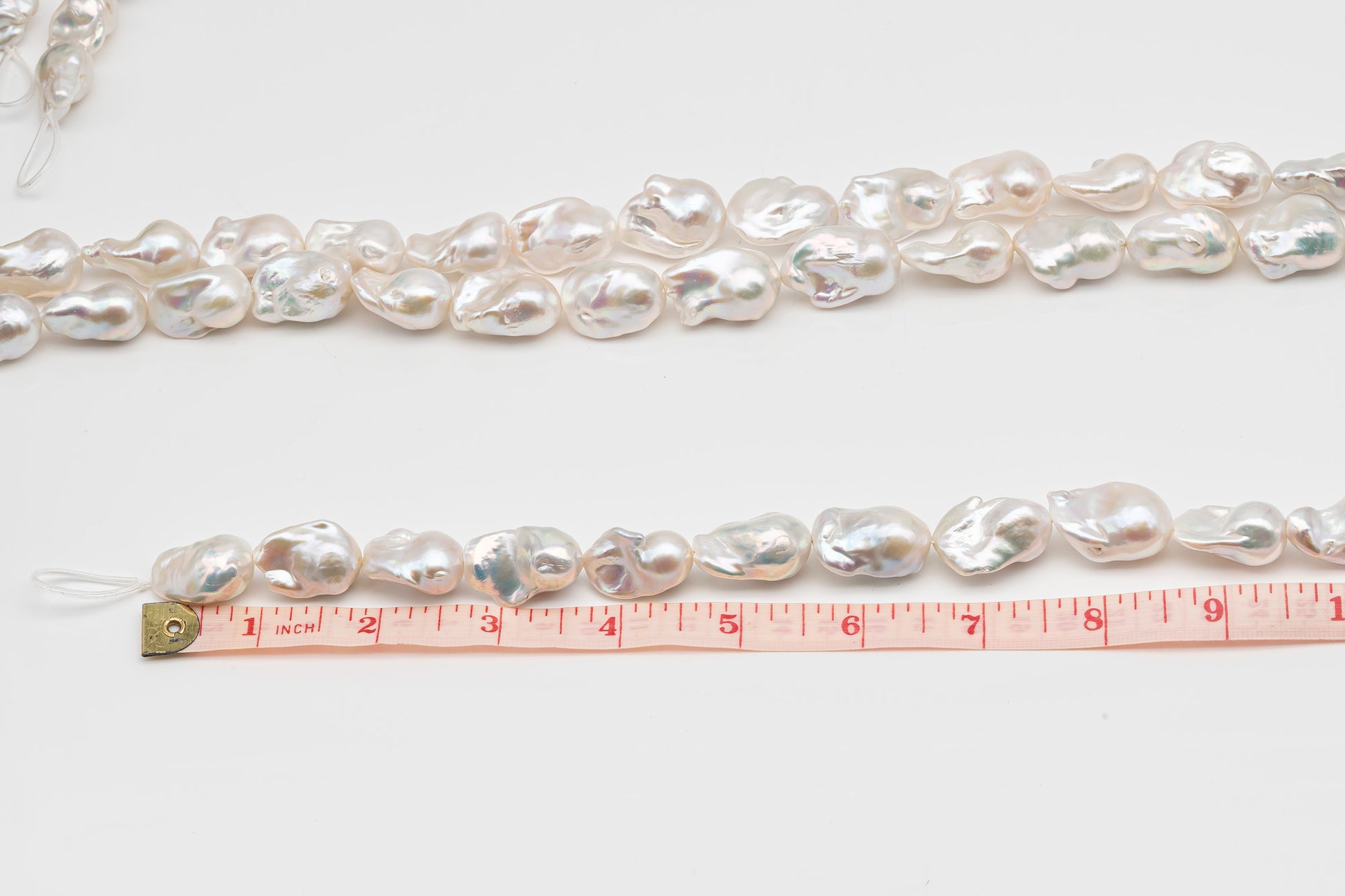 Create stunning statement pieces with this full strand of large baroque freshwater pearls. Each pearl is naturally unique, hand-selected for its beautiful shape, smooth surface, and radiant luster. Perfect for crafting necklaces, bracelets, or high-end earrings, these pearls bring a touch of timeless elegance and organic character to your jewelry designs.
