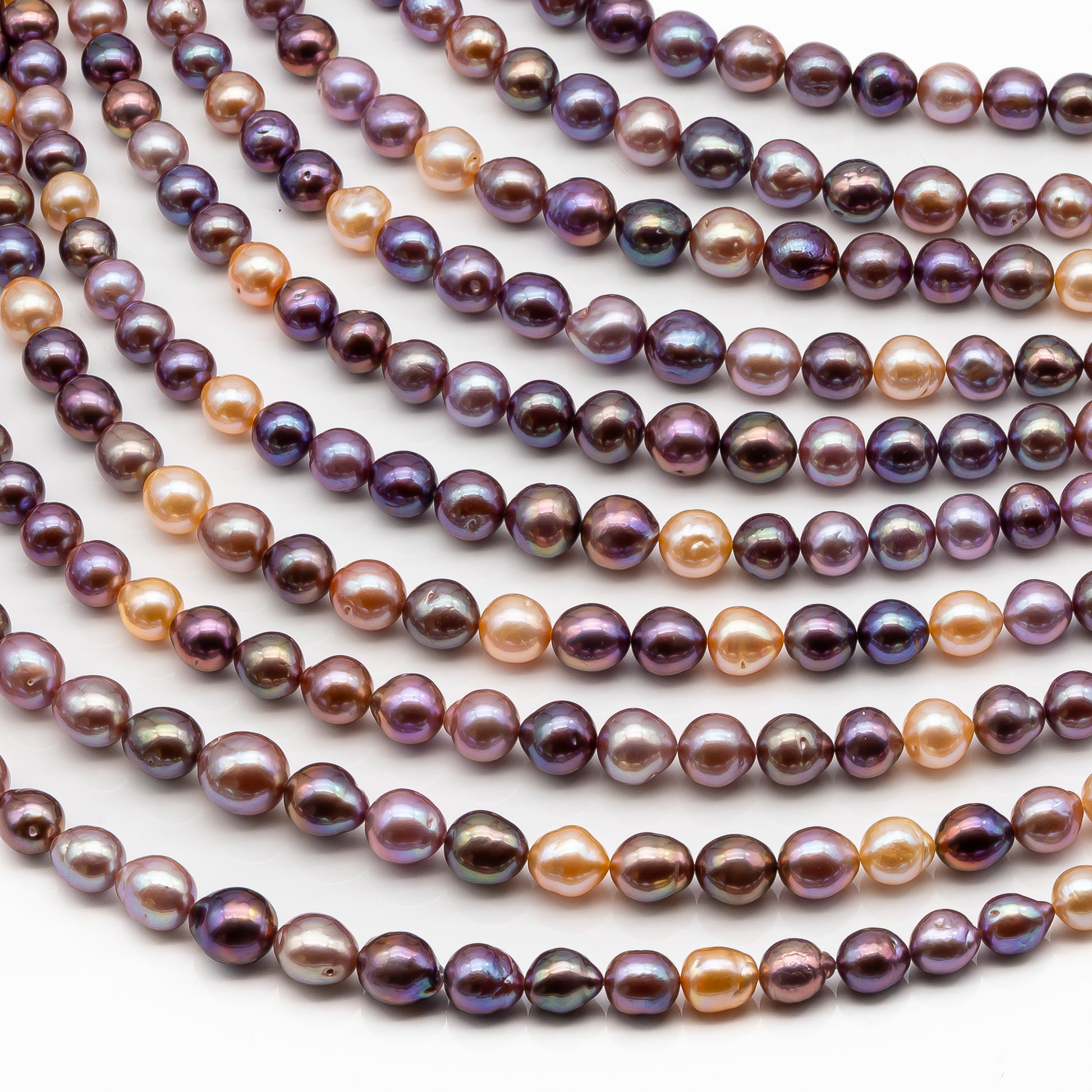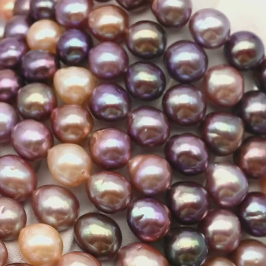 Beautiful freshwater Edison pearls temporarily strung in a full strand, ready for your custom jewelry designs. These stunning pearls feature all-natural colors with high luster. The strand is strung graduated, meaning the pearls start smaller at each end and gradually increase to the largest size in the middle, then decrease back down to smaller pearls at the other end. Perfect for creating necklaces, bracelets, earrings, or any jewelry design you prefer.
