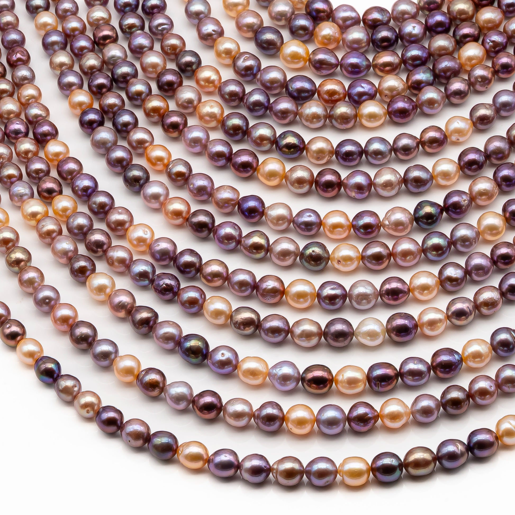 Beautiful freshwater Edison pearls temporarily strung in a full strand, ready for your custom jewelry designs. These stunning pearls feature all-natural colors with high luster. The strand is strung graduated, meaning the pearls start smaller at each end and gradually increase to the largest size in the middle, then decrease back down to smaller pearls at the other end. Perfect for creating necklaces, bracelets, earrings, or any jewelry design you prefer.