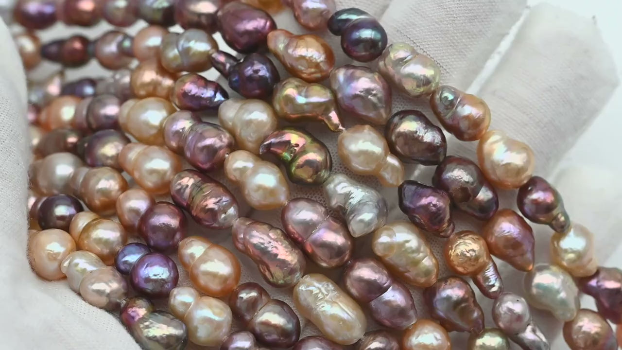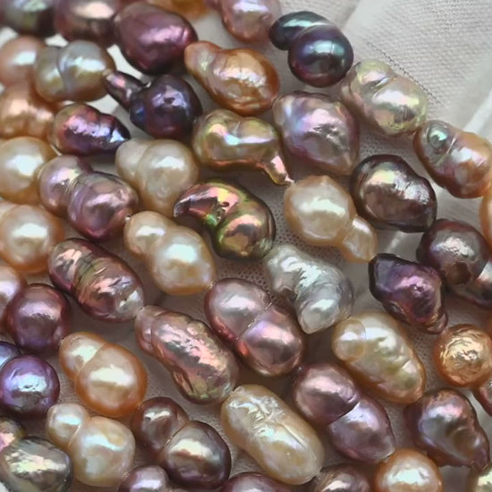 Beautiful freshwater Edison pearls temporarily strung in a full strand, ready for your custom jewelry designs. These stunning pearls feature all-natural colors with high luster. The strand is strung graduated, meaning the pearls start smaller at each end and gradually increase to the largest size in the middle, then decrease back down to smaller pearls at the other end. Perfect for creating necklaces, bracelets, earrings, or any jewelry design you prefer.