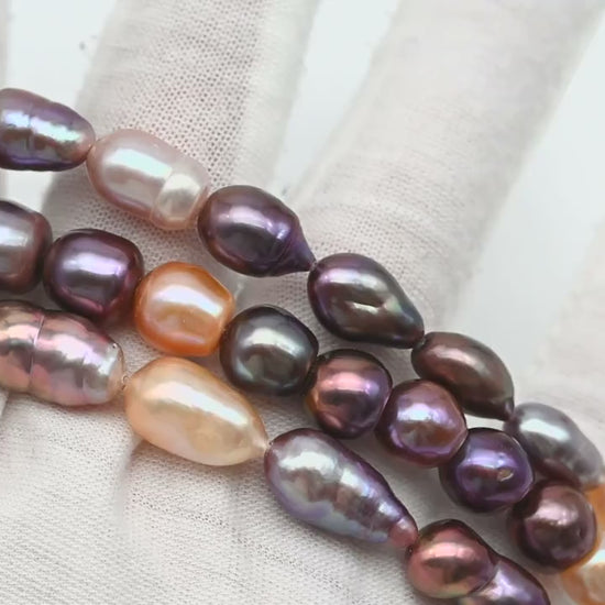 Beautiful freshwater Edison pearls temporarily strung in a full strand, ready for your custom jewelry designs. These stunning pearls feature all-natural colors with high luster. The strand is strung graduated, meaning the pearls start smaller at each end and gradually increase to the largest size in the middle, then decrease back down to smaller pearls at the other end. Perfect for creating necklaces, bracelets, earrings, or any jewelry design you prefer.