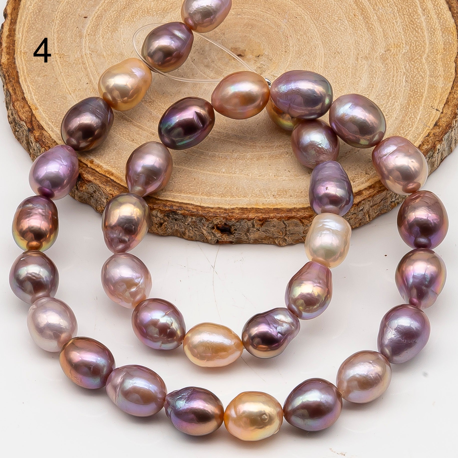 Beautiful freshwater Edison pearls temporarily strung in a full strand, ready for your custom jewelry designs. These stunning pearls feature white colors with high luster. The strand is strung graduated, meaning the pearls start smaller at each end and gradually increase to the largest size in the middle, then decrease back down to smaller pearls at the other end. Perfect for creating necklaces, bracelets, earrings, or any jewelry design you prefer.