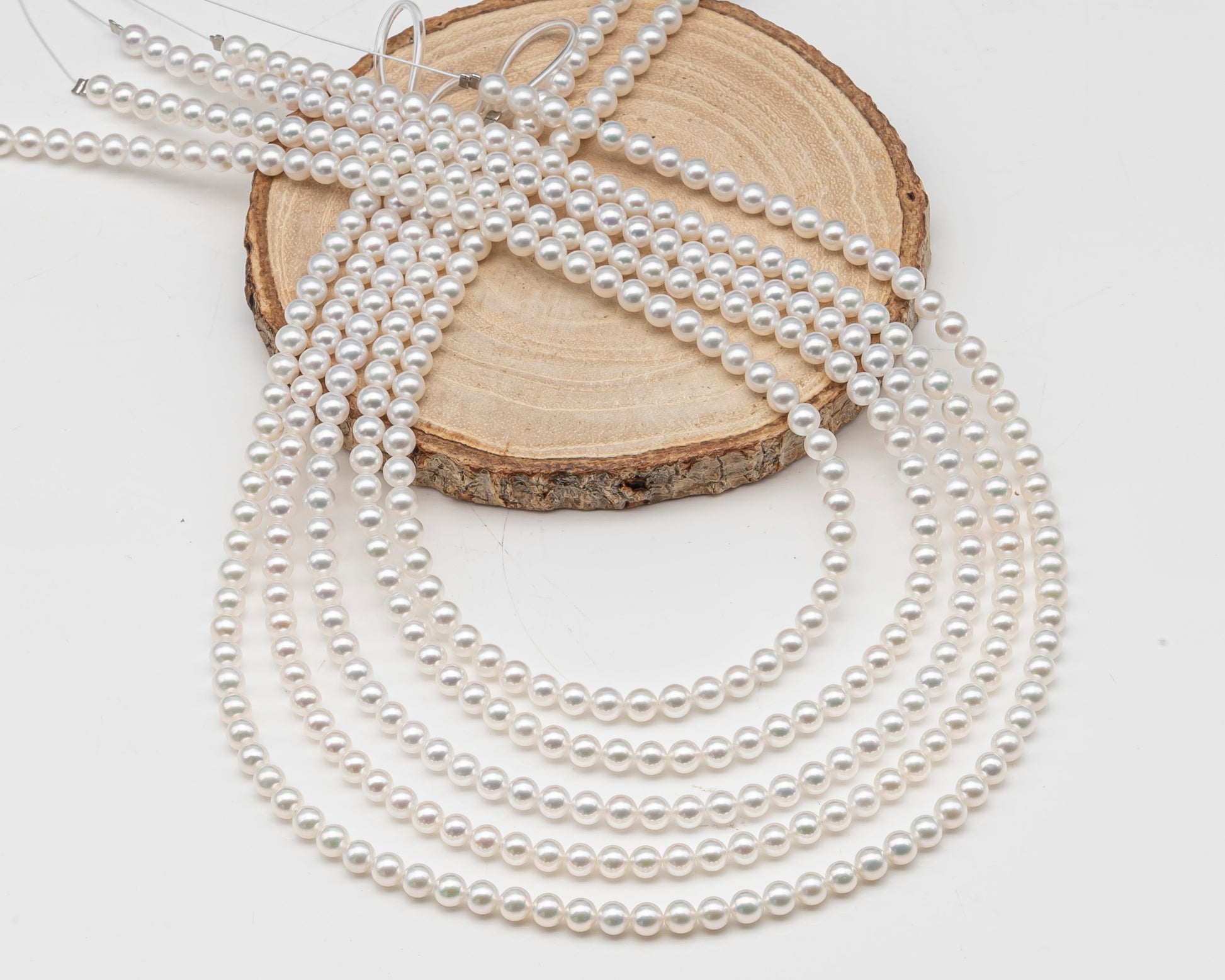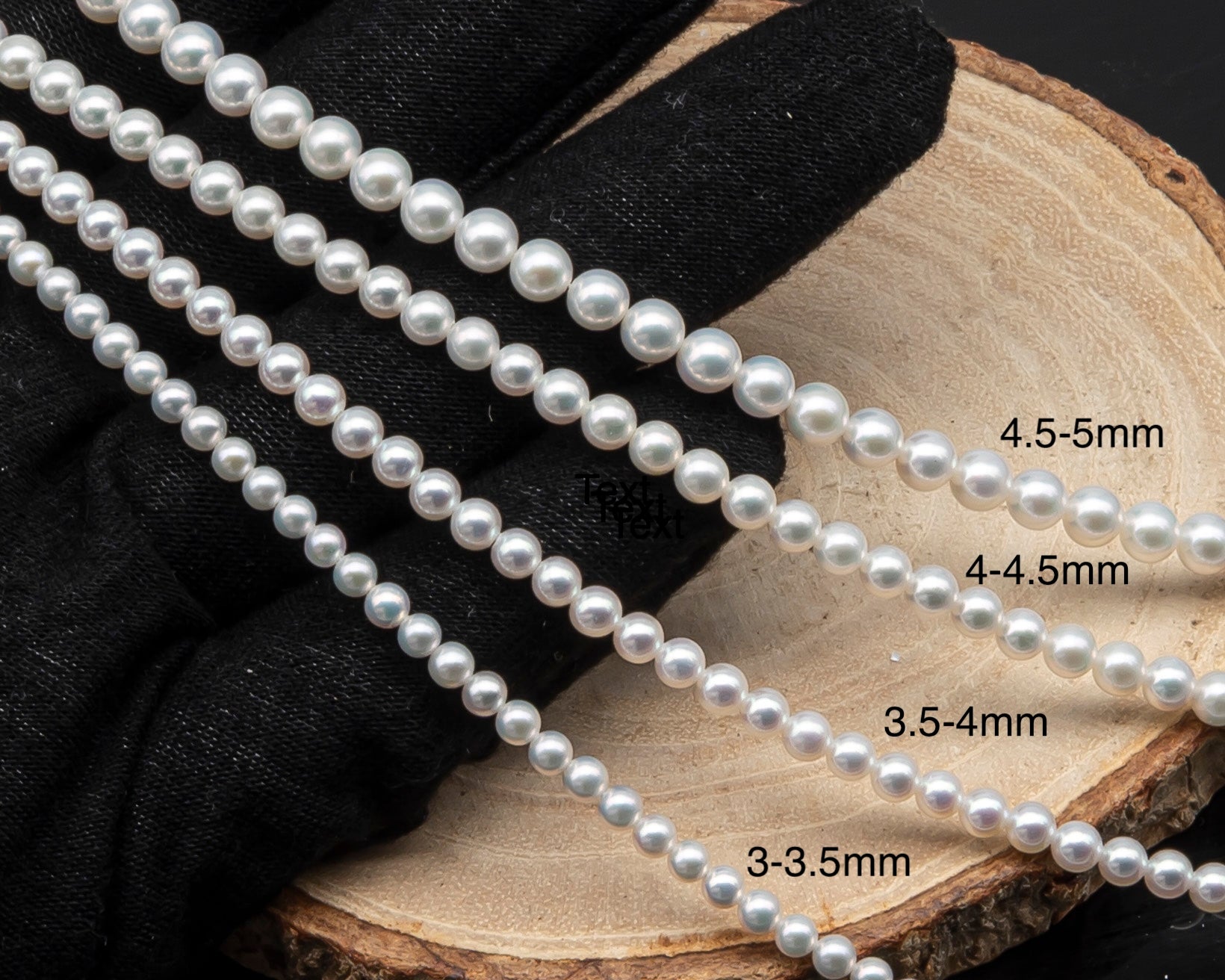 AAA+ 3-3.5mm, 3.5-4mm, 4-4.5mm or 4.5-5mm Freshwater Pearl in Full Strand, White Colors with High Luster, Pre-Strung for Jewelry Making, SKU # 3124FW