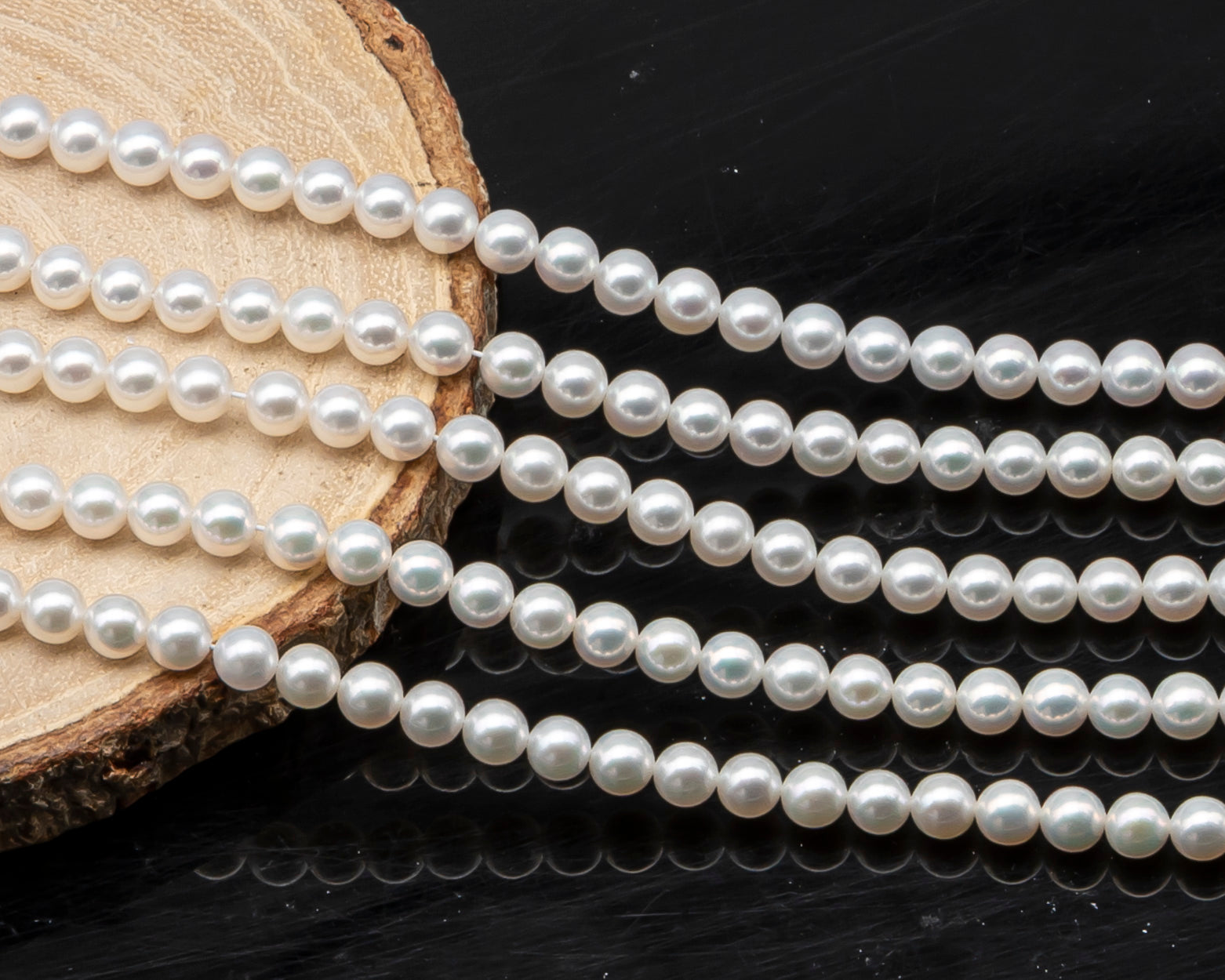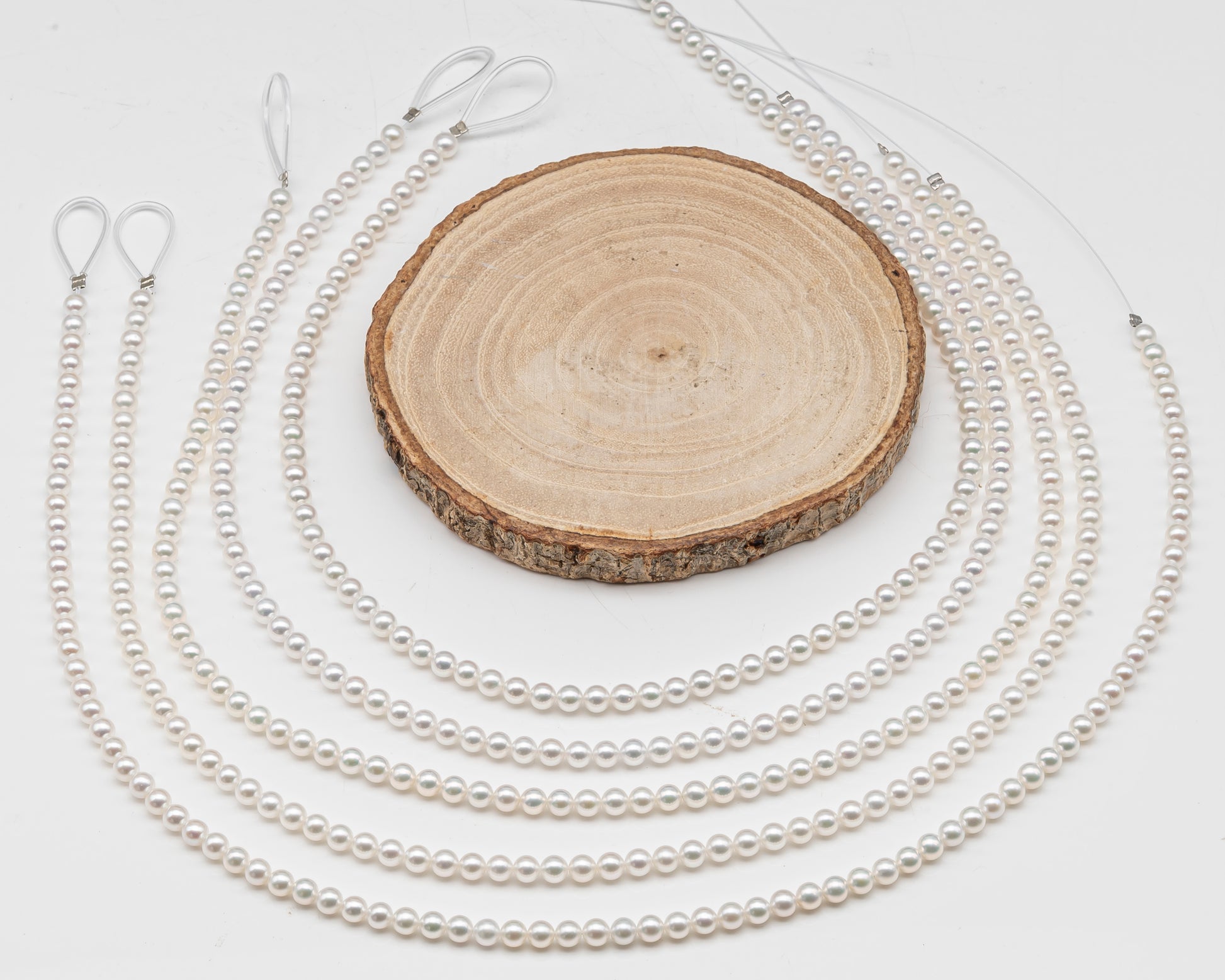 Beautiful freshwater pearls temporarily strung in a full strand, ready for your custom jewelry designs. These stunning pearls feature white colors with high luster. The strand is strung graduated, meaning the pearls start smaller at each end and gradually increase to the largest size in the middle, then decrease back down to smaller pearls at the other end. Perfect for creating necklaces, bracelets, earrings, or any jewelry design you prefer.