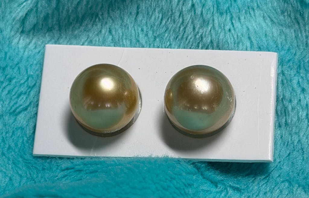 Golden South Sea Pearls in natural golden or yellow colors. This listing is for matched pair pearls. Please note that some pieces might have blemishes on the side and back of the pearl. The back side is where the hole will be drilled by default.