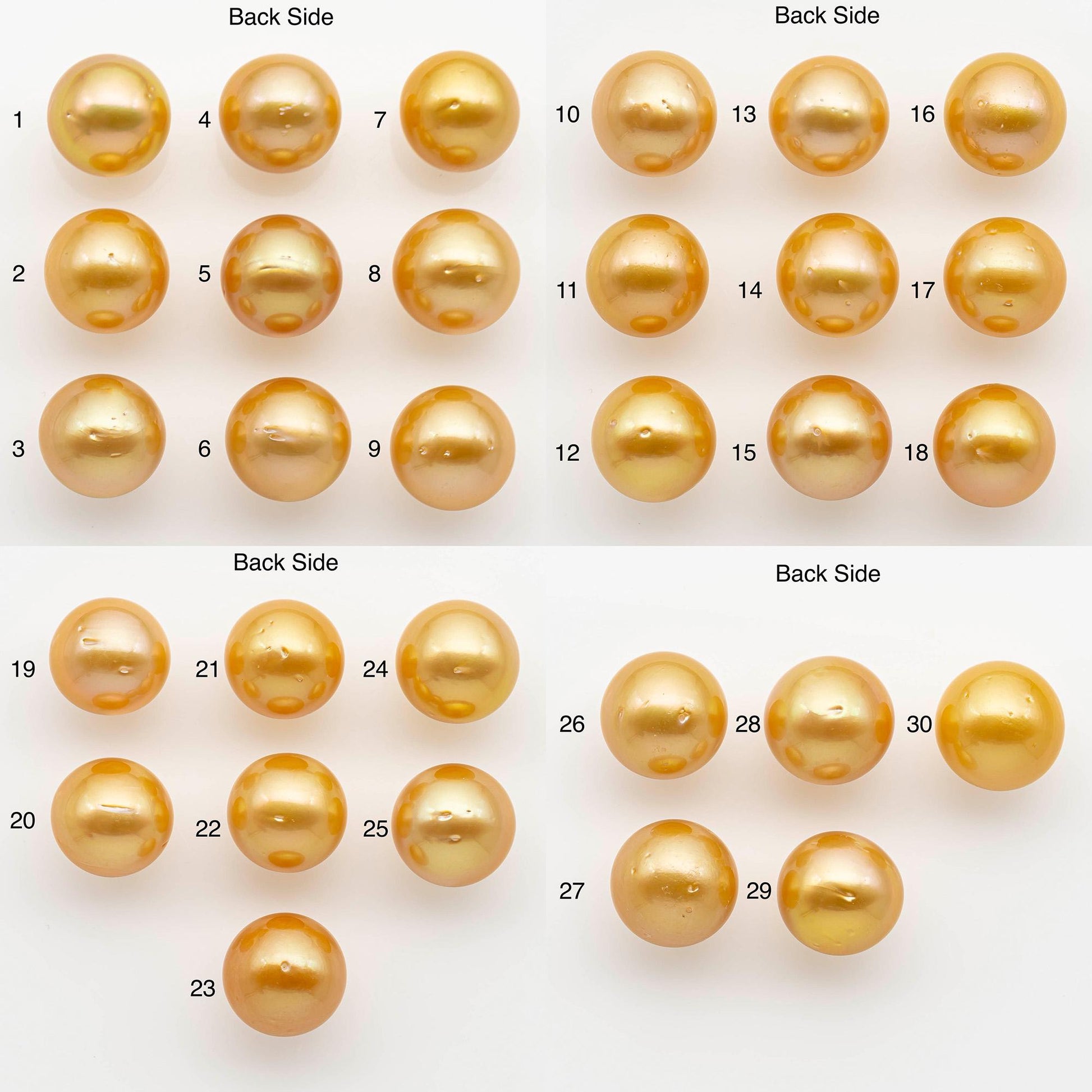 Golden South Sea Pearls in natural golden or yellow colors. This listing is for one single pearl. Please note that some pieces might have blemishes on the side and back of the pearl. The back side is where the hole will be drilled by default.