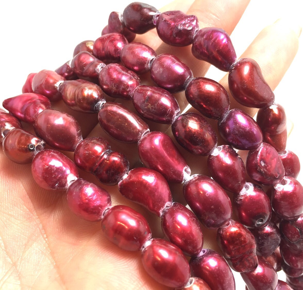 Large Hole Pearls, 8-9.5mm Nugget Shape, Red Colors Freshwater Pearls, 8 inch strand with 2.5mm Hole Size, LH045