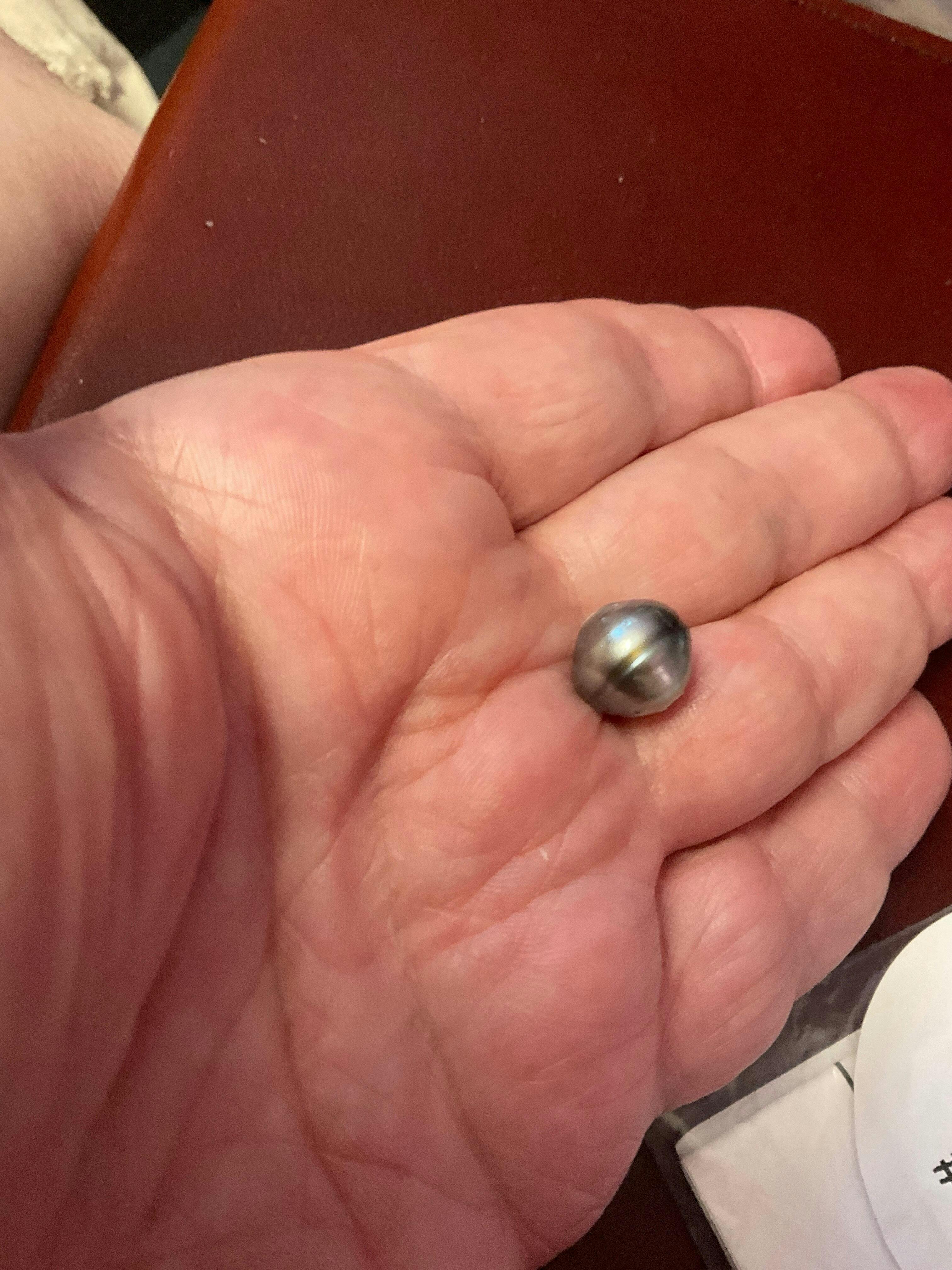 This gorgeous single Tahitian pearl showcases stunning beauty in authentic natural colors. Cultivated in French Polynesian, these gems are prized for their exotic hues and luminous luster. There will be blemishes on back and/or sides, as expected with genuine pearls. Completely undrilled and ready for your custom jewelry designs or collection.