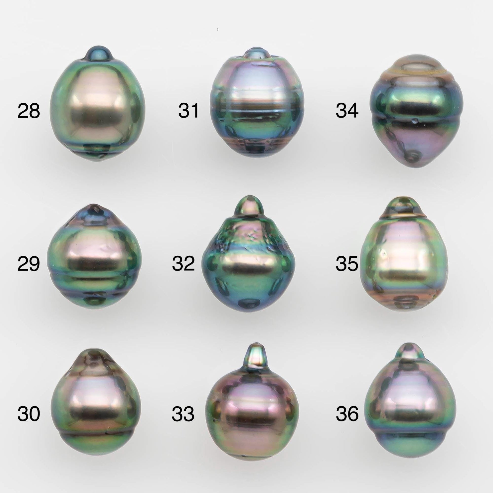 9-10mm Natural Color Tahitian Pearl Drop Shape Loose Single Piece Undrilled in High Luster and Minor Blemishes, SKU # 2632TH