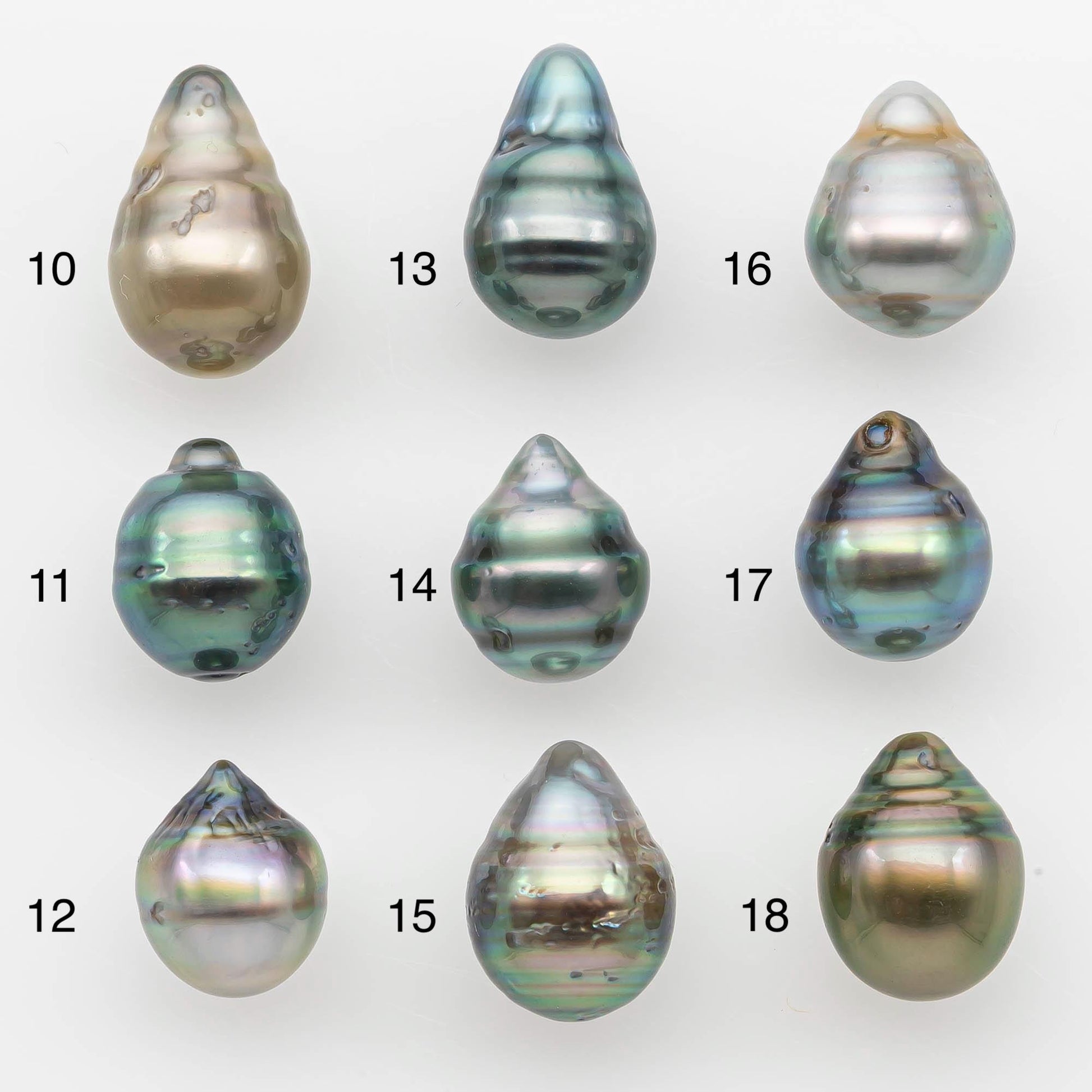 9-10mm Natural Color Tahitian Pearl Drop Shape Loose Single Piece Undrilled in High Luster and Minor Blemishes, SKU # 2640TH
