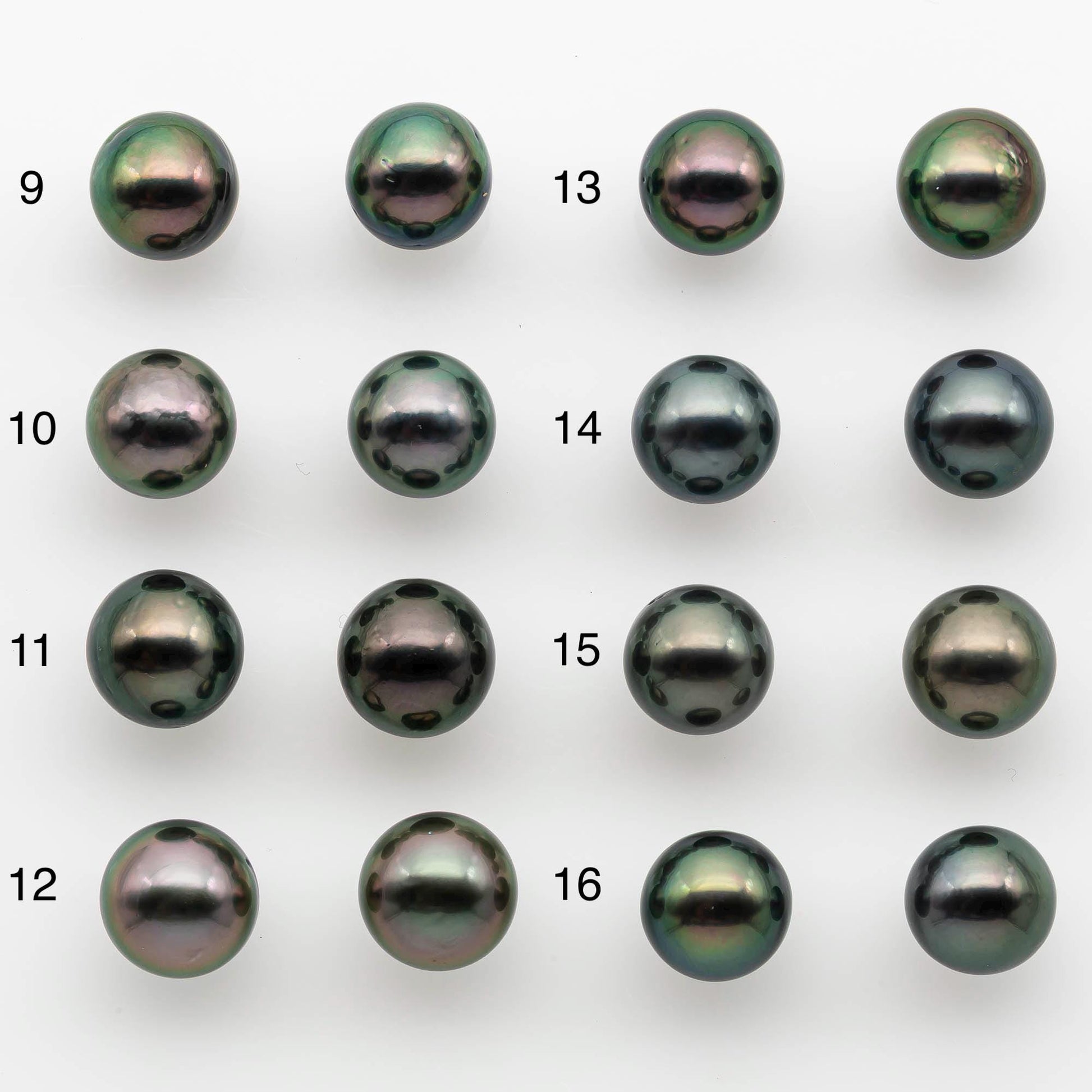 Tahitian Pearls Pair with blemish around the side and high luster. Some will have less blemish than others. Please be aware that pearls are natural occurrences; therefore, each pearl will not be exactly the same. Also, these are iridescent color. Since the pearls are undrilled, you can have all kinds of created designs for one-of-a-kind earring..