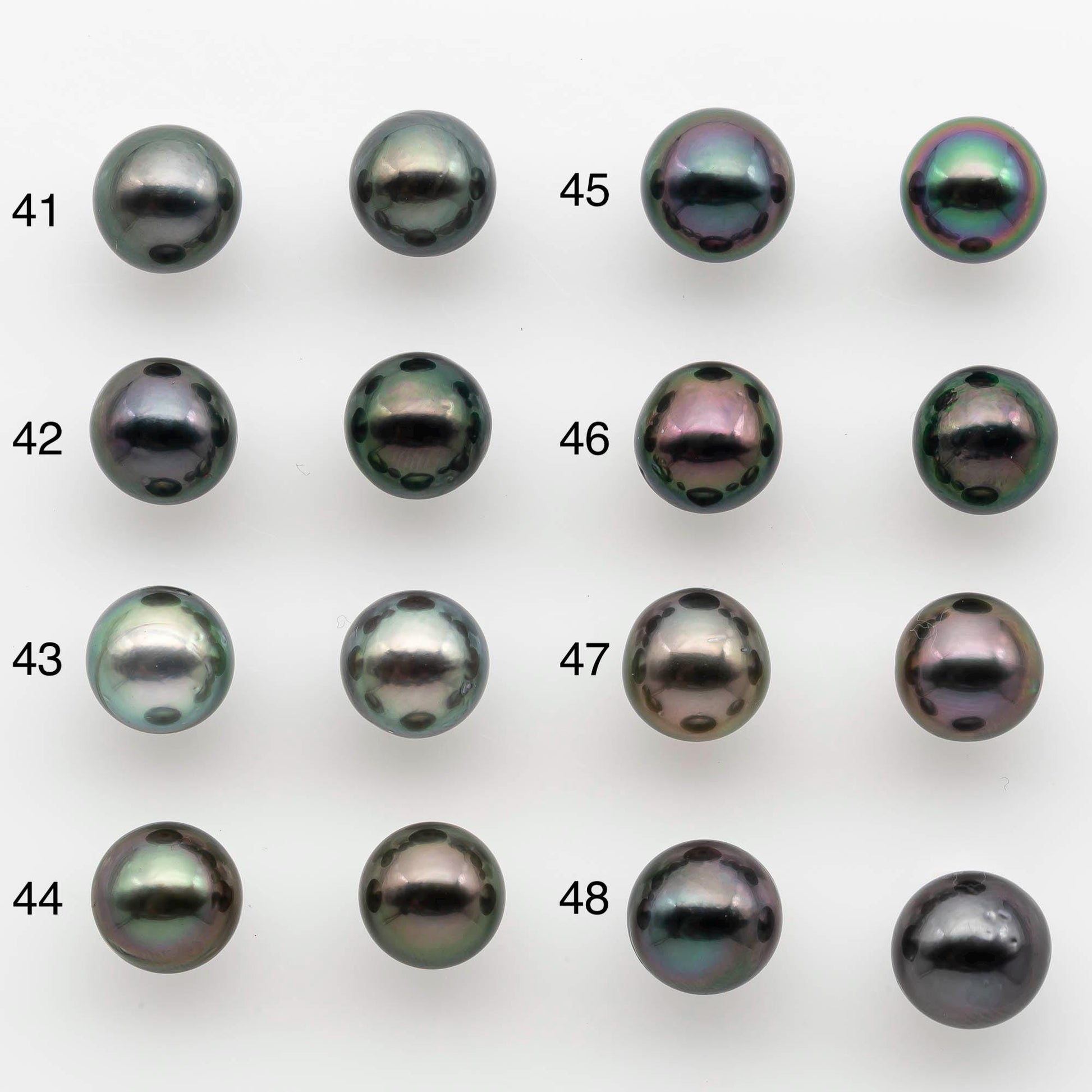 10-11mm Matching Pair Near Round Tahitian Pearl in High Luster, Undrilled for Making Earring or Pendant, SKU # 2542TH