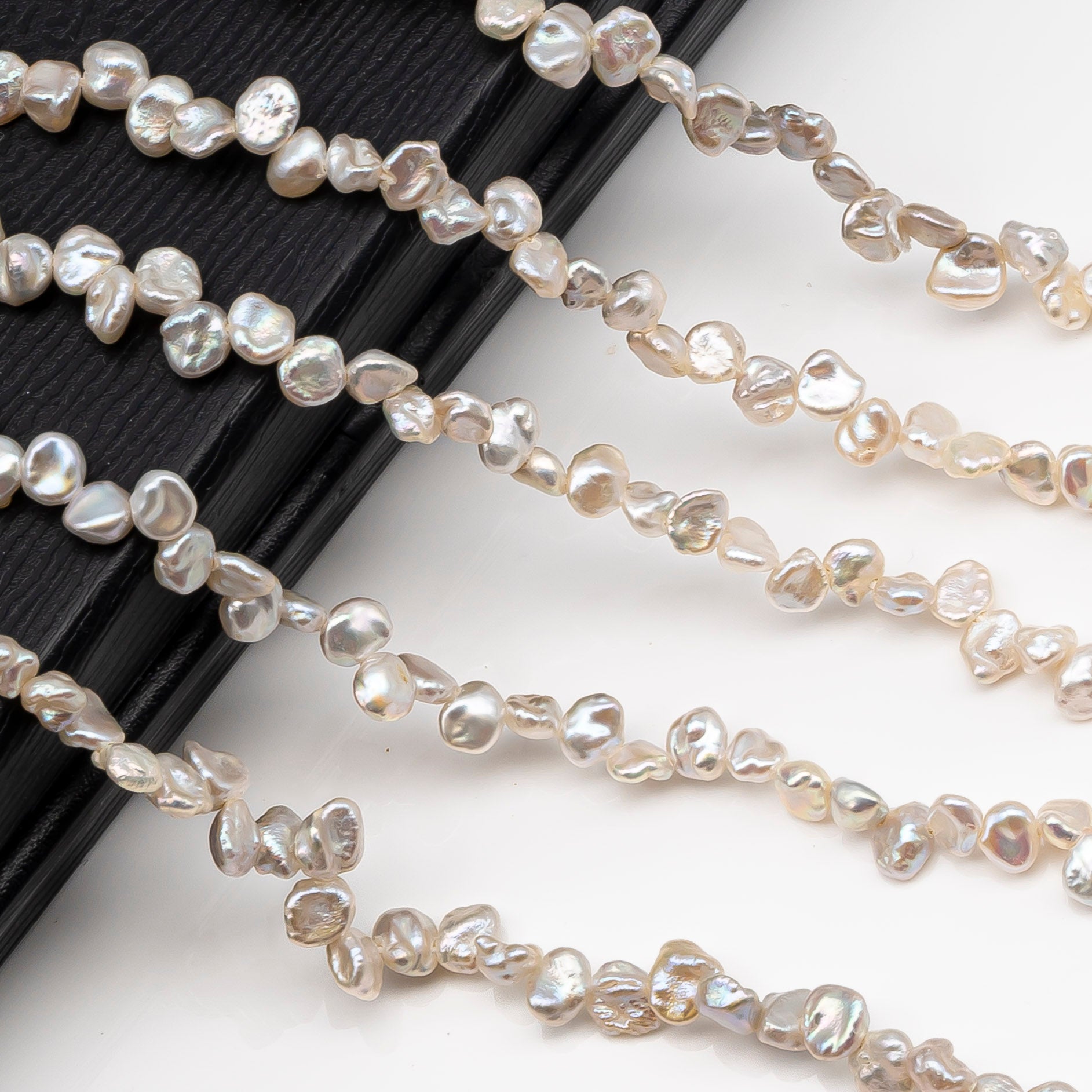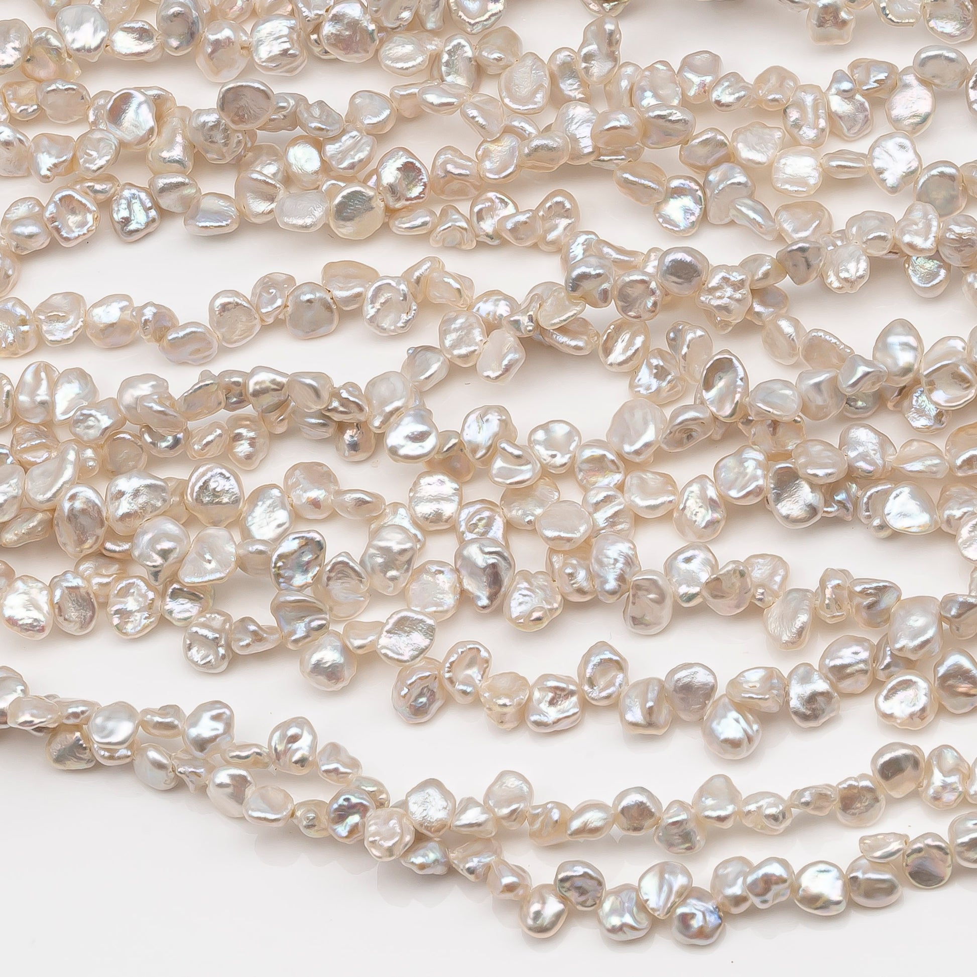 These are tiny freshwater keshi pearls. With these pearls, you can make pearl necklaces, bracelets, or earnings. Or you can use them as fillers on other designs.