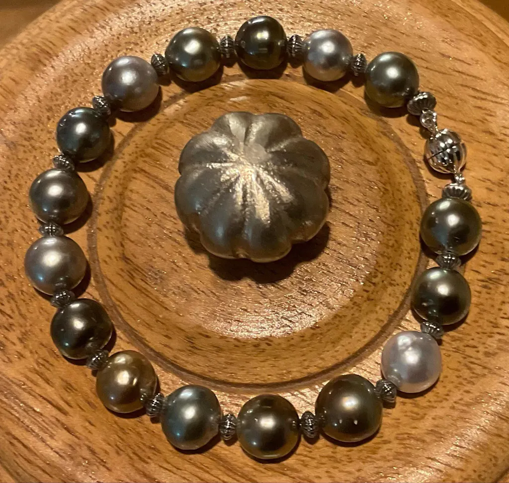 Single loose Tahitian Pearls in undrilled loose with beautiful luster. Its lovely natural colors and natural formations are perfect for one of a kind jewelry design. Tahitian pearls also referred as black pearls, but they come in different tone of natural colors such as peacock, green, blue, black, grey, or brown.