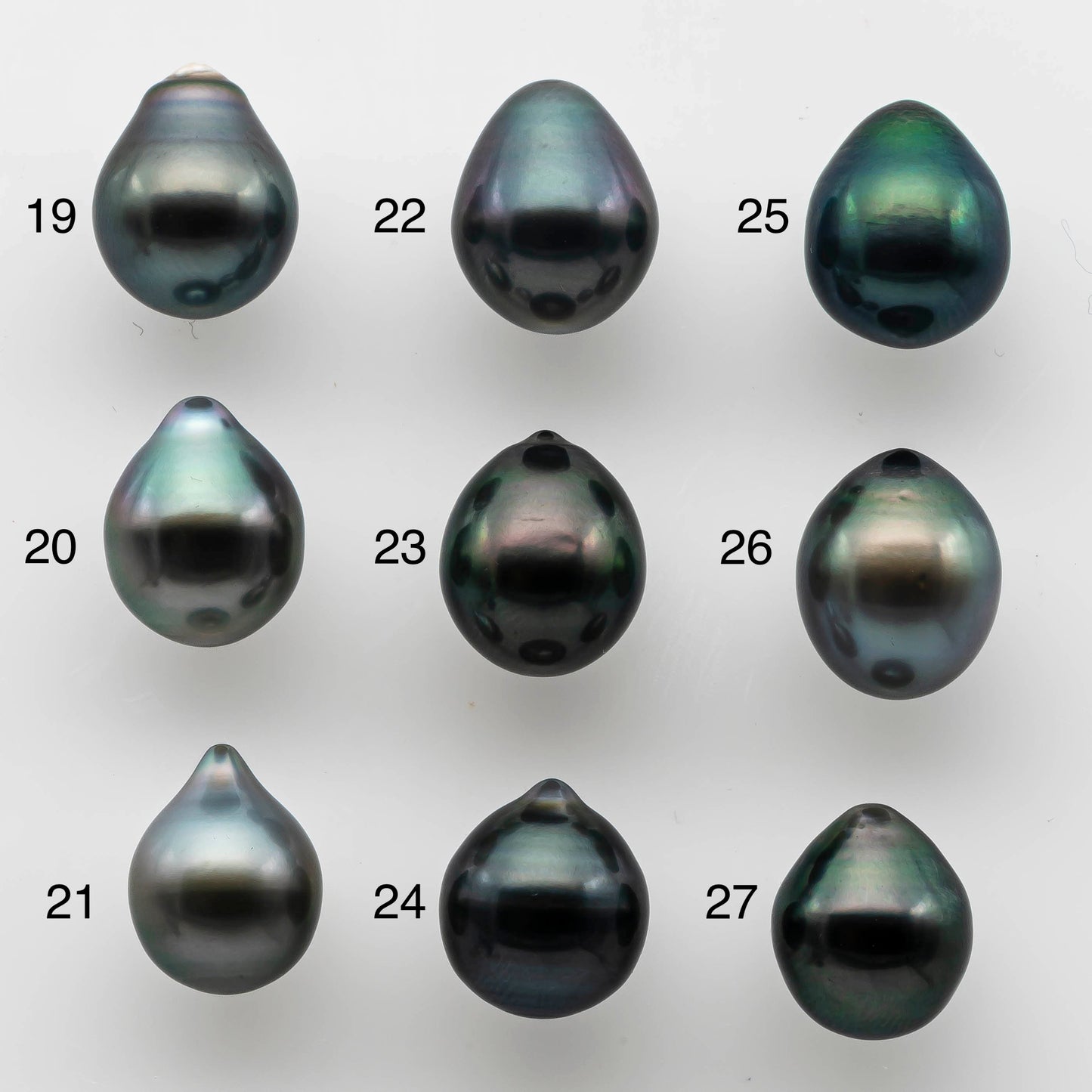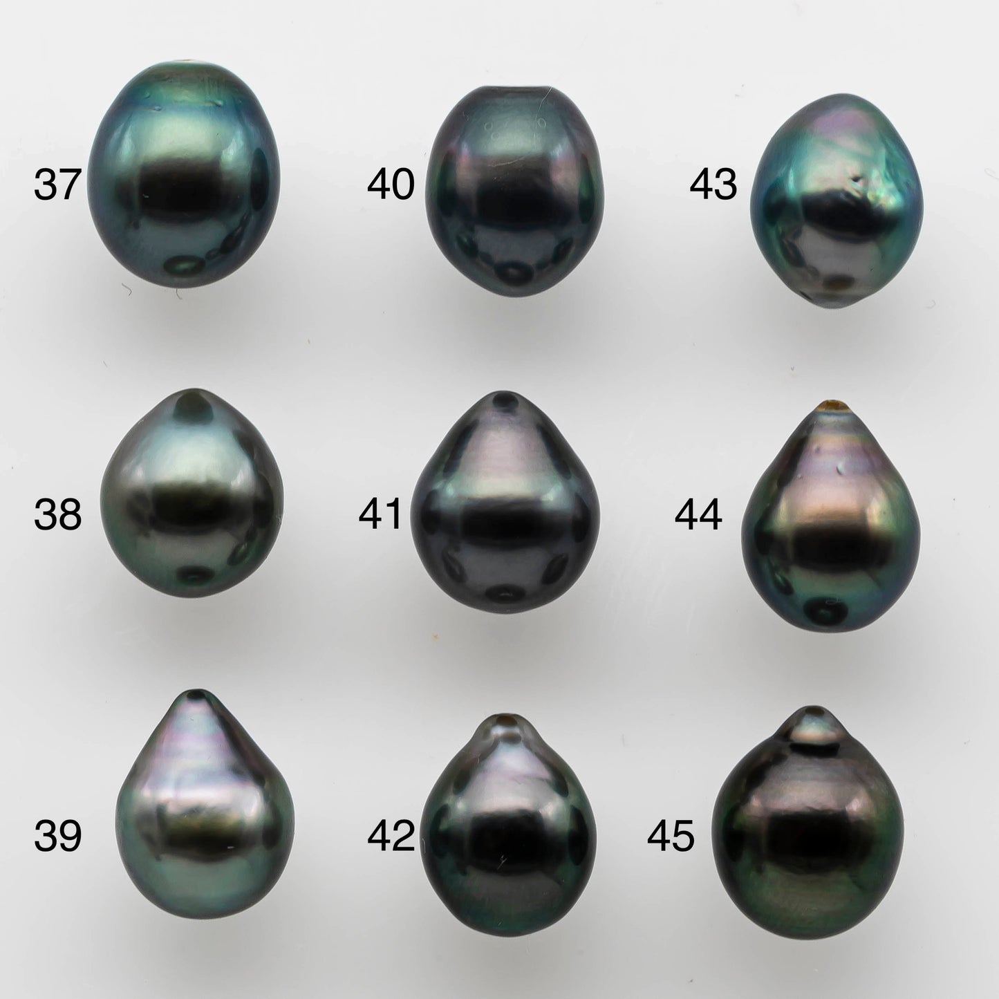 Single black undrilled Tahitian Pearls teardrops with beautiful luster. Its lovely natural colors and natural formations are perfect for one of a kind jewelry design. Tahitian pearls also referred as black pearls, but they come in different tone of natural colors such as peacock, green, blue, black, grey, or brown.