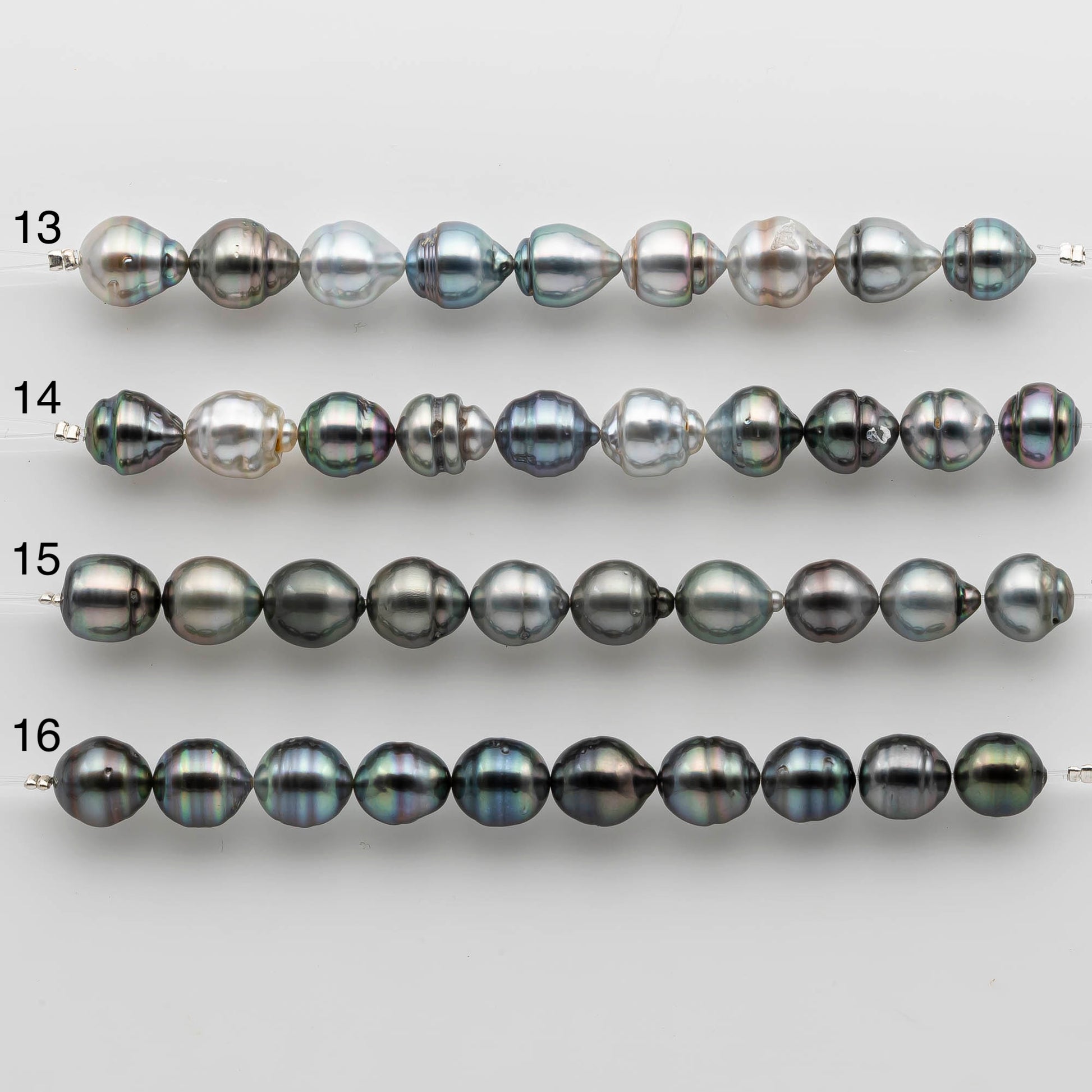 Tahitian Pearl in short strand for beading or jewelry making. These are beautiful pearls with lusters and blemishes. Tahitian pearls are referred as black pearls, but they come in different tones of natural colors. The colors are peacock, green, blue, black, grey, or light grey.