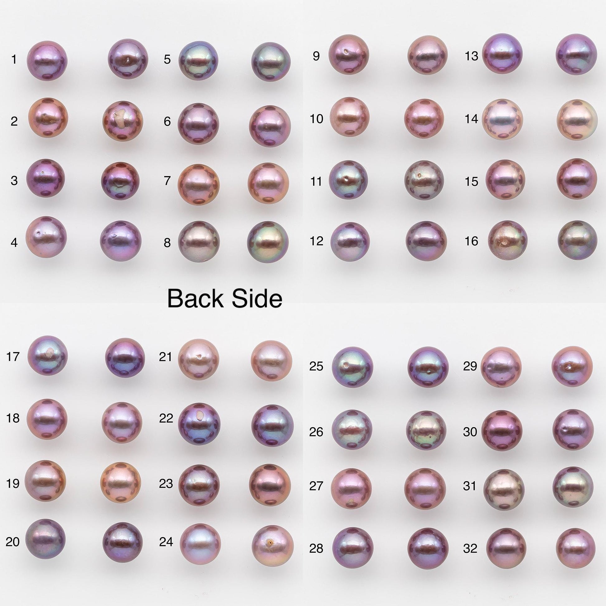 Two pieces of loose round Edison Pearl with 0.9mm half drilled for making earring stud. These have beautiful lusters and all the colors a natural, not color enhanced. Some of the deep purple colors are hard to find.