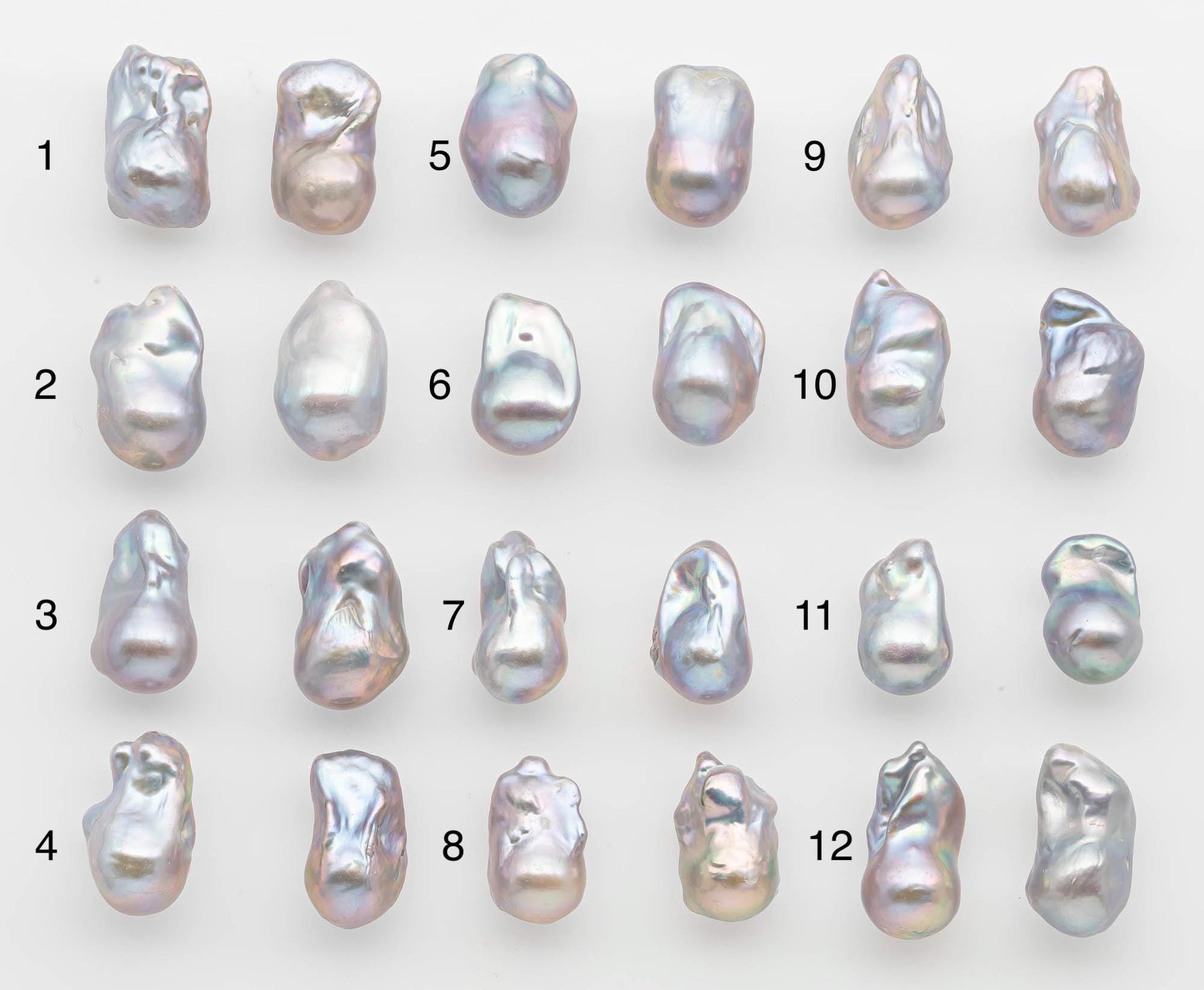These are freshwater baroque pearls sold as a matching set. They are high-quality pairs with smooth surfaces on both the front and back. Some may have minor natural blemishes, which are part of the pearl’s unique beauty and cannot be completely avoided.