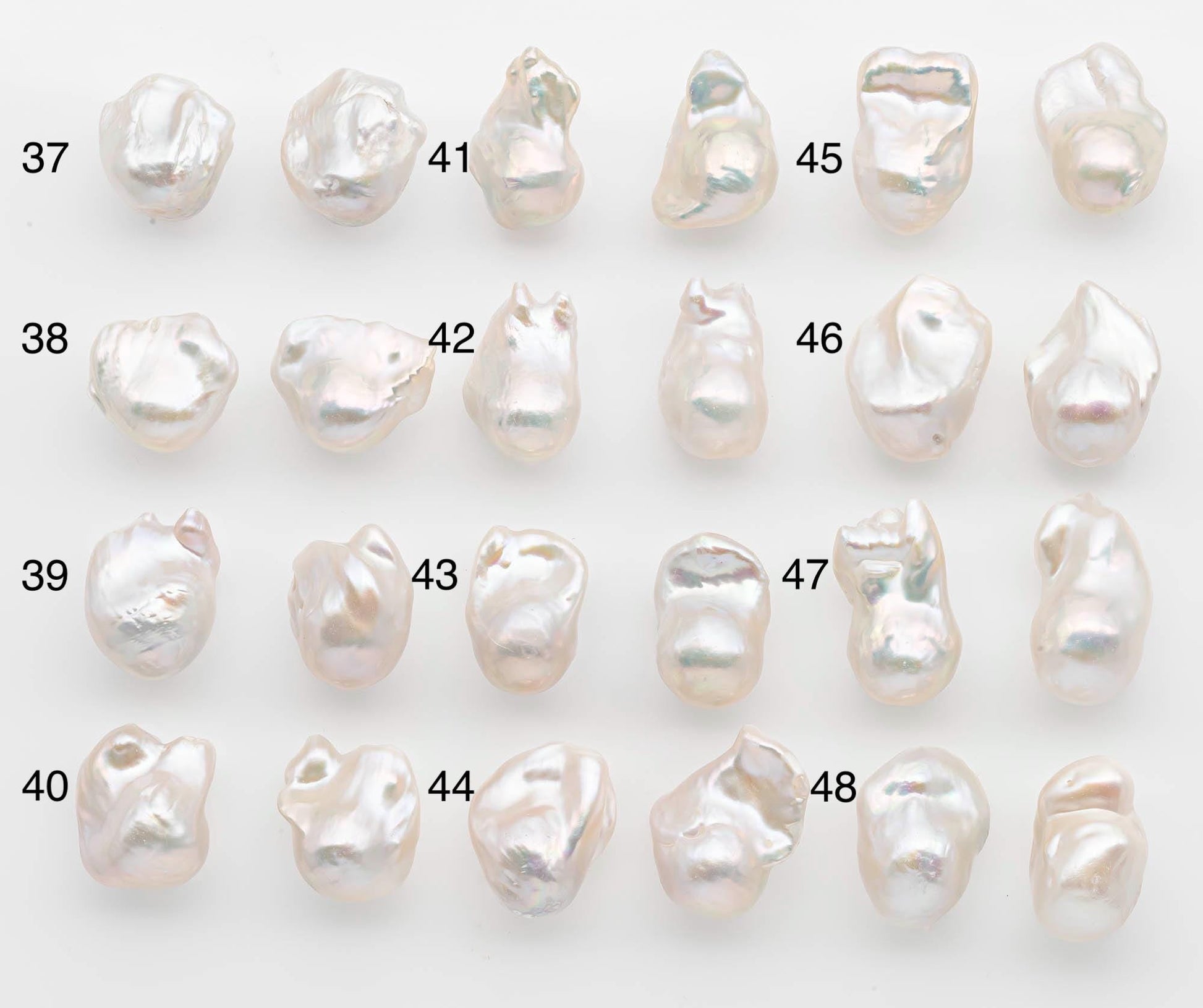 These are freshwater baroque pearls sold as a matching set. They are high-quality pairs with smooth surfaces on both the front and back. Some may have minor natural blemishes, which are part of the pearl’s unique beauty and cannot be completely avoided.