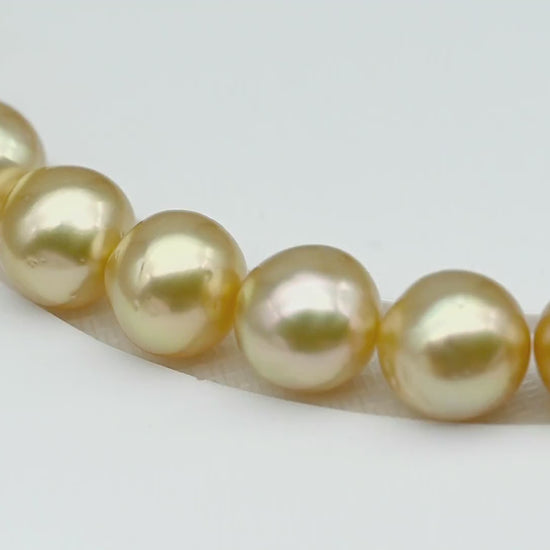 Golden South Sea Pearls in natural golden or yellow colors. Please note that some pieces might have blemishes on the side and back of the pearl.