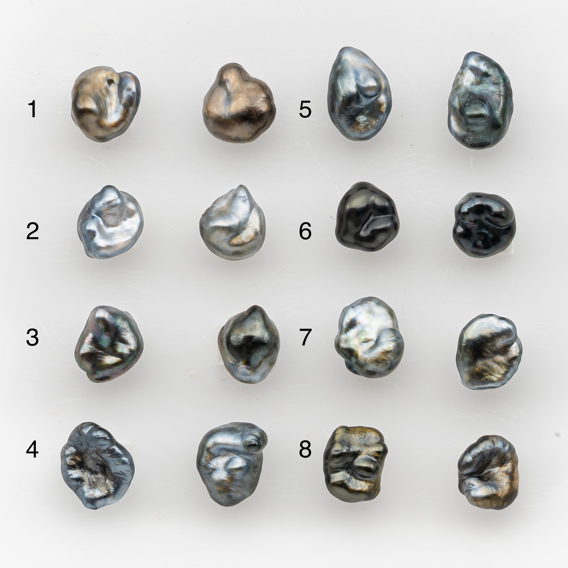 Matched pairs of tiny Tahitian Keshi pearls, naturally formed without a bead nucleus and composed of 100% solid nacre with natural color. These rare, non-nucleated pearls offer exceptional luster and organic beauty, perfect for delicate earrings and fine minimalist jewelry designs. Each pair is unique, showcasing the true natural elegance of Tahitian pearls.