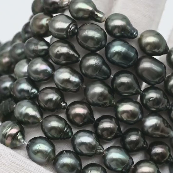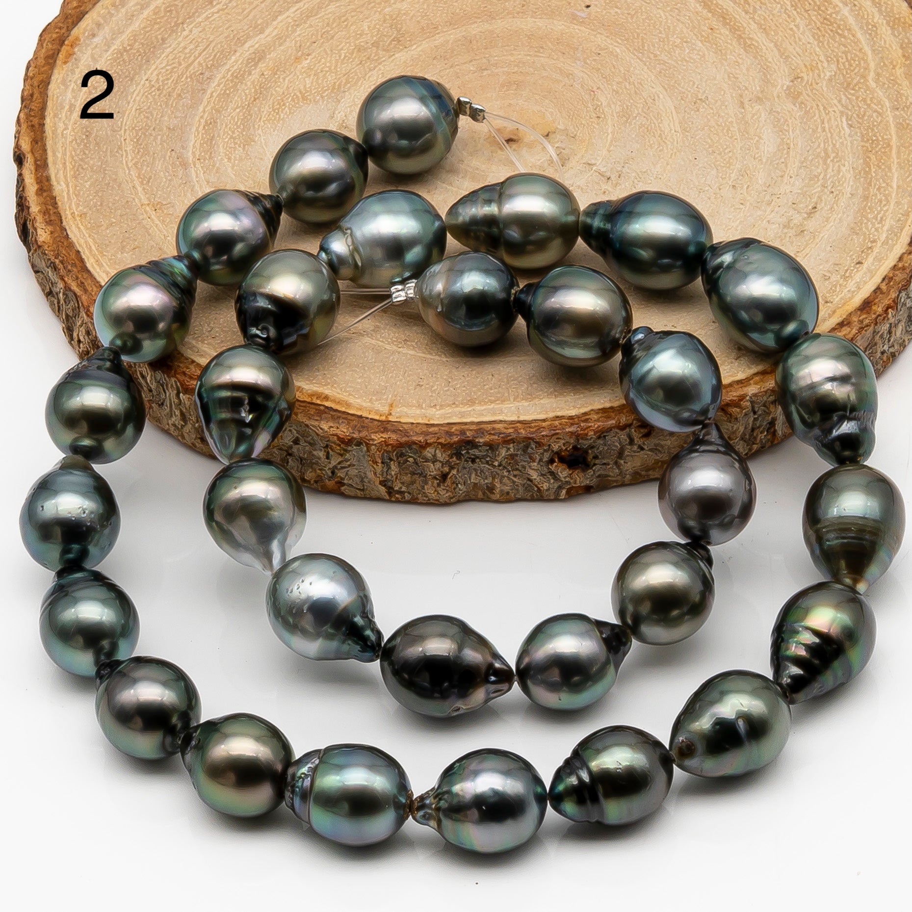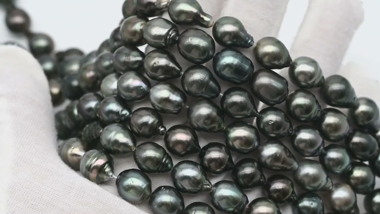 10-11mm Tahitian Pearl in Full Strand, Natural Colors with High Luster, Temporarily Strung Black Pearls for Jewelry Making, SKU # 2861TH