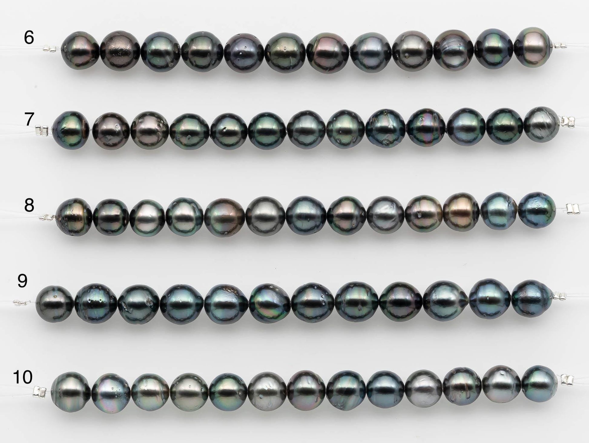 Tahitian Pearl in short strand for beading or jewelry making. These are beautiful pearls with lusters and blemishes. Tahitian pearls are referred as black pearls, but they come in different tones of natural colors. The colors are peacock, green, blue, black, grey, or light grey.