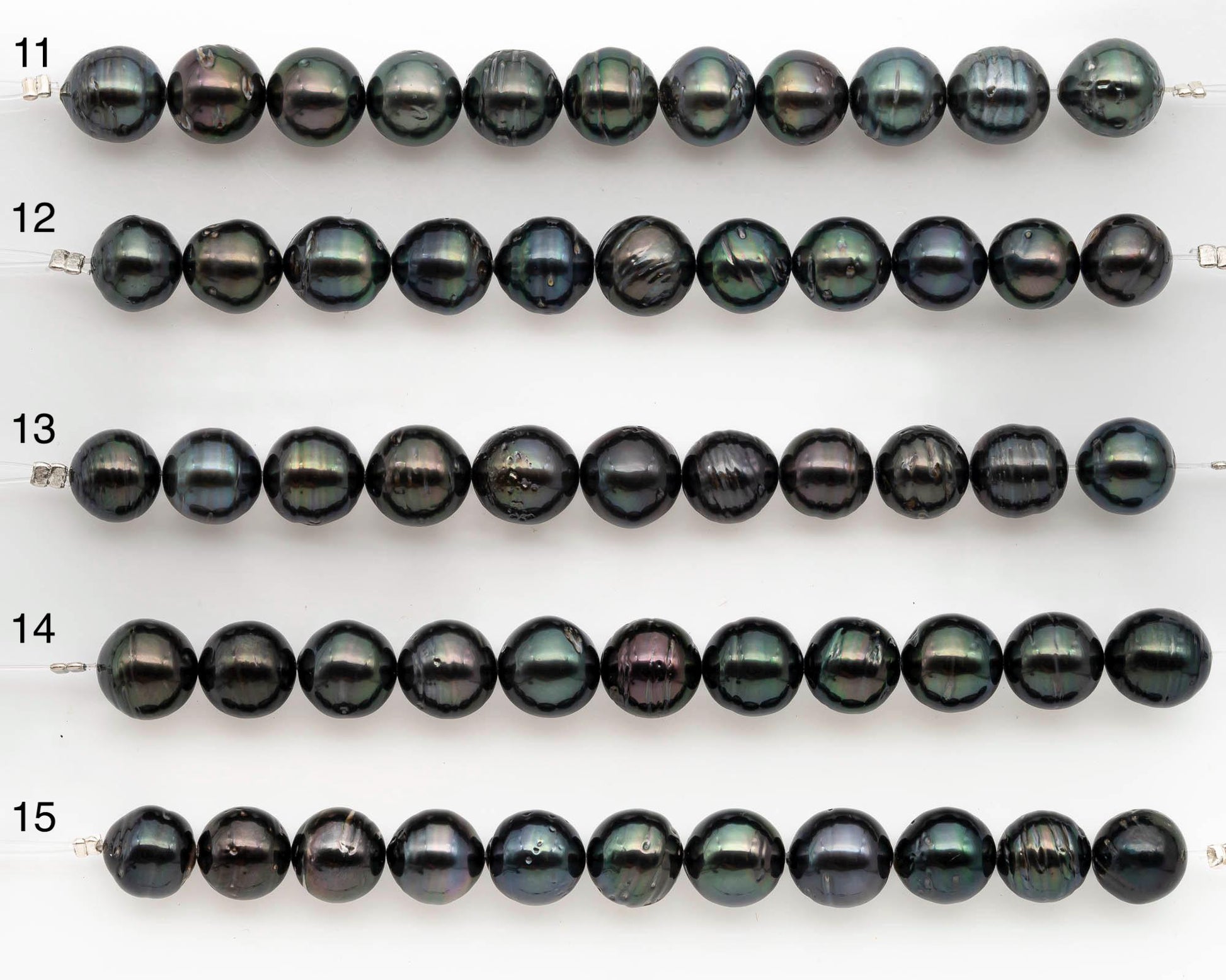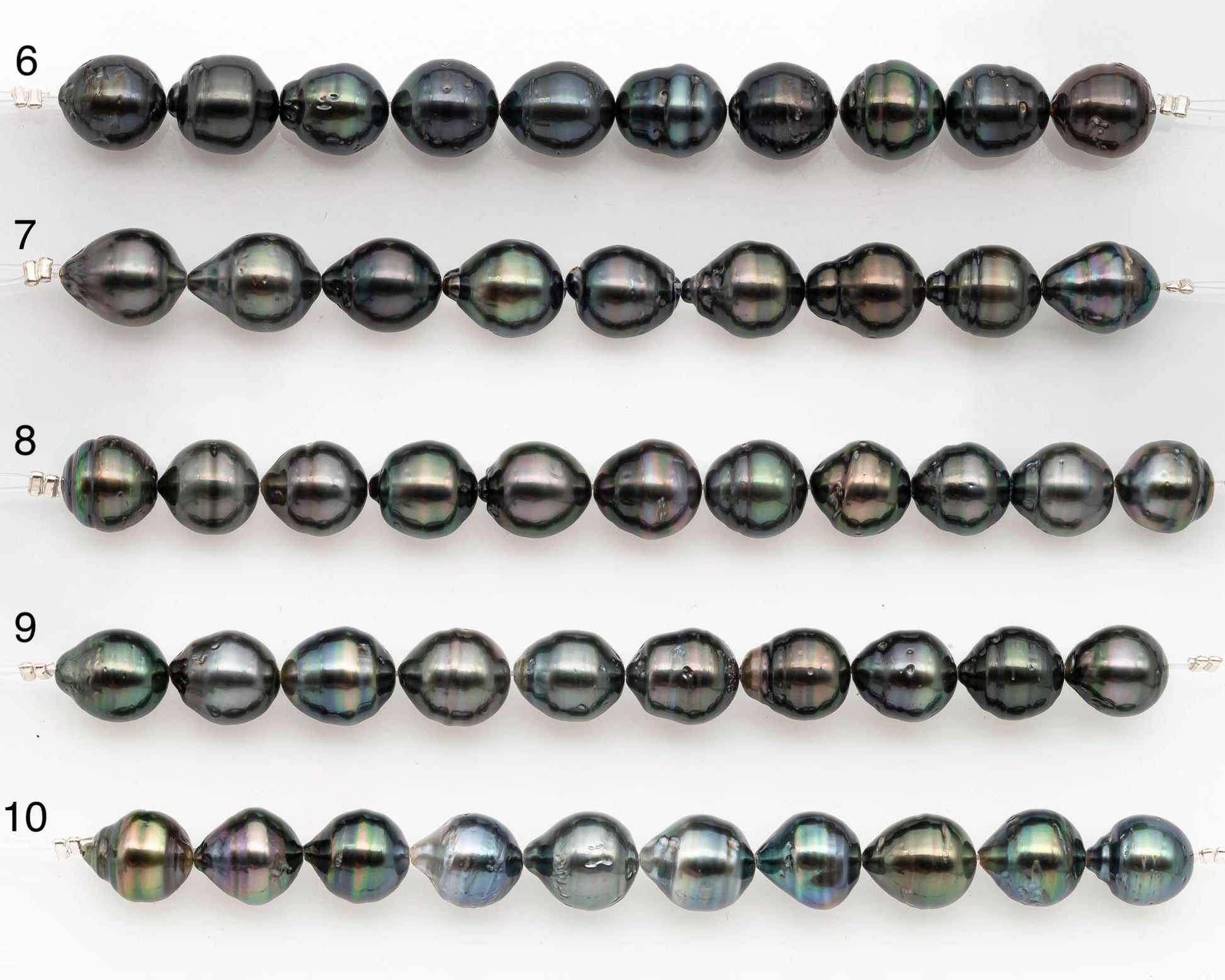 Tahitian Pearl in short strand for beading or jewelry making. These are beautiful pearls with lusters and blemishes. Tahitian pearls are referred as black pearls, but they come in different tones of natural colors. The colors are peacock, green, blue, black, grey, or light grey.