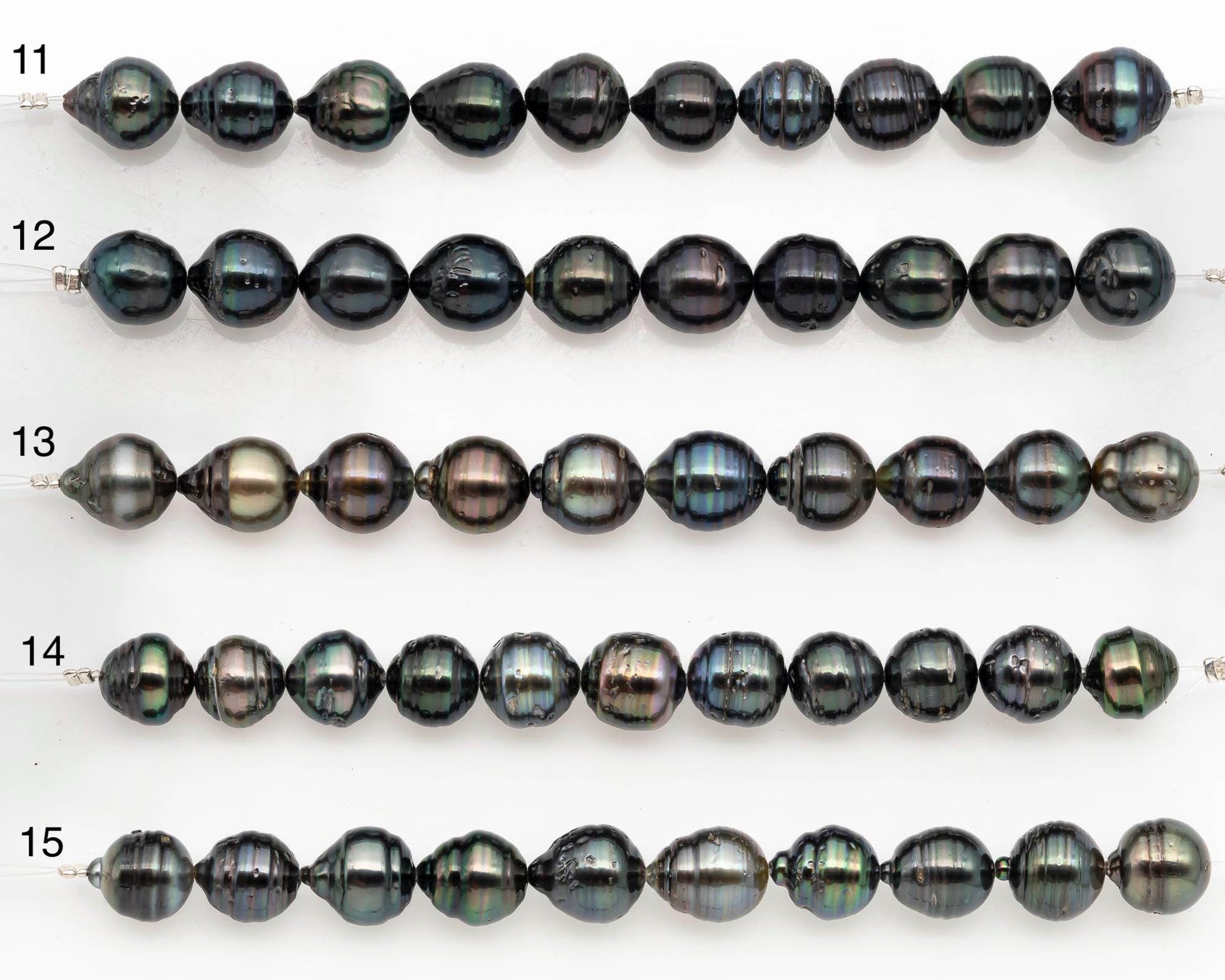 Tahitian Pearl in short strand for beading or jewelry making. These are beautiful pearls with lusters and blemishes. Tahitian pearls are referred as black pearls, but they come in different tones of natural colors. The colors are peacock, green, blue, black, grey, or light grey.