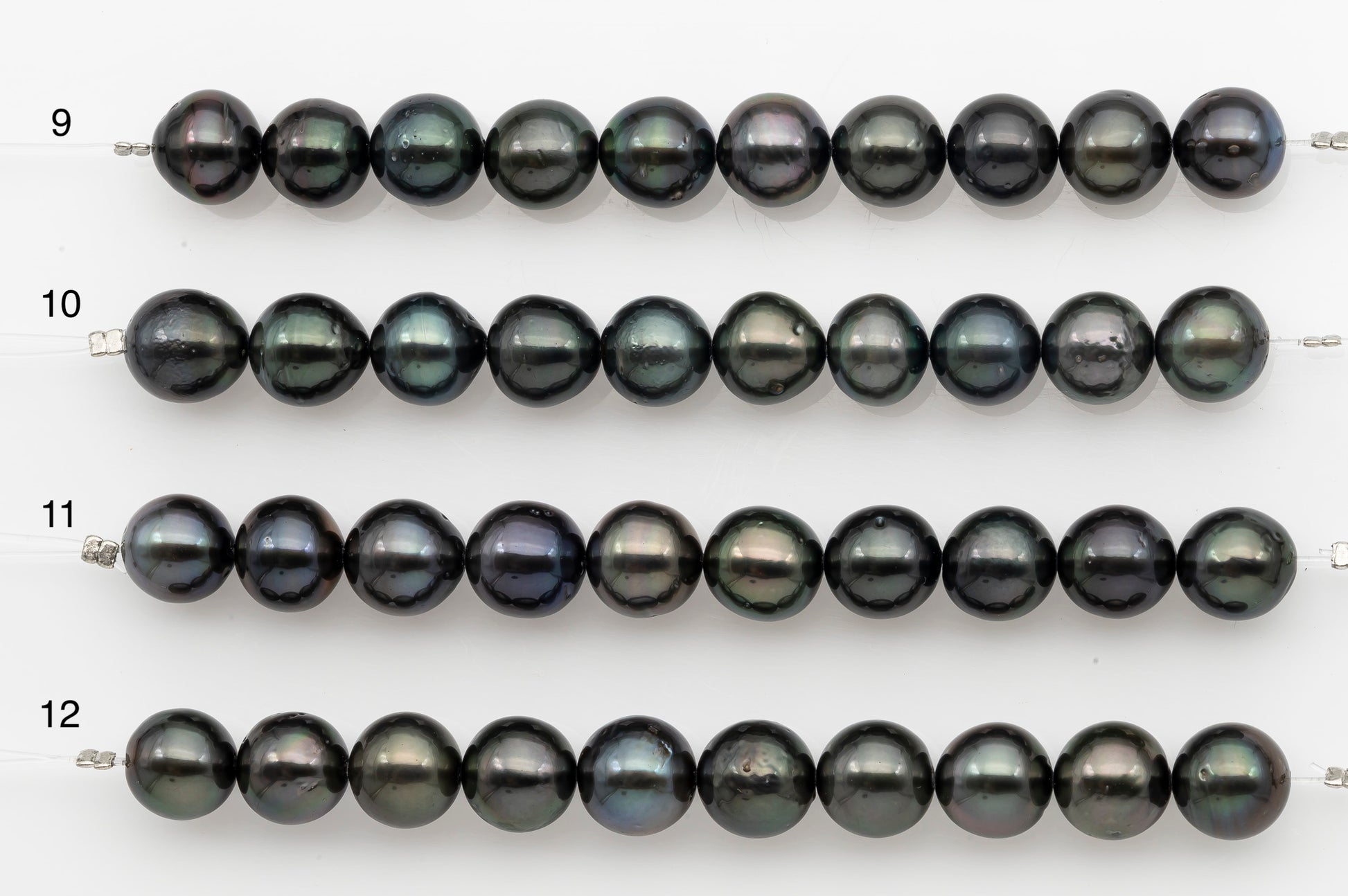 10-11mm Tahitian Pearl Short Strand, Near Round with High Luster and Natural Surface Variations, SKU # 2705TH