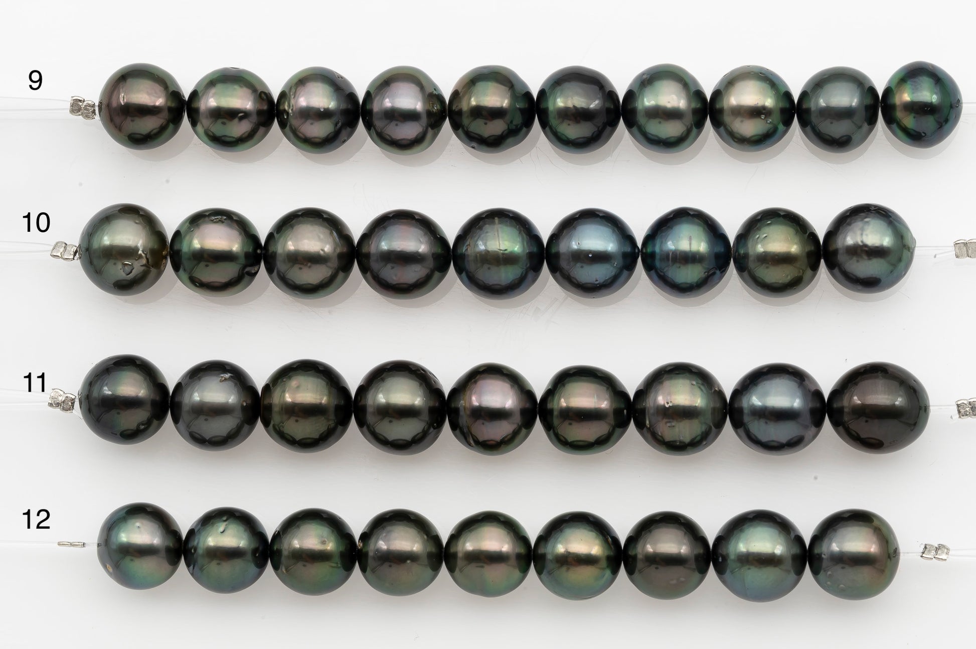 11-12mm Tahitian Pearl Short Strand, Near Round with High Luster and Natural Surface Variations, SKU # 2707TH