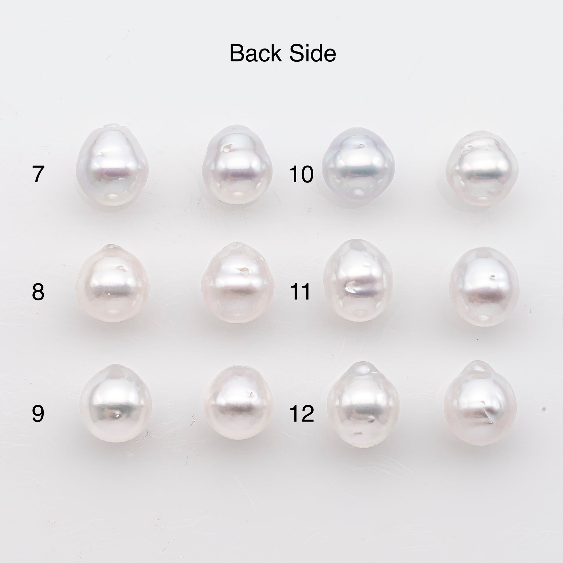This listing is for a pair white South Sea pearl drop shape. It features a natural color, beautiful luster, and light surface blemishes that highlight its authenticity. The pair is undrilled, making it ideal for custom jewelry design or adding to your collection.